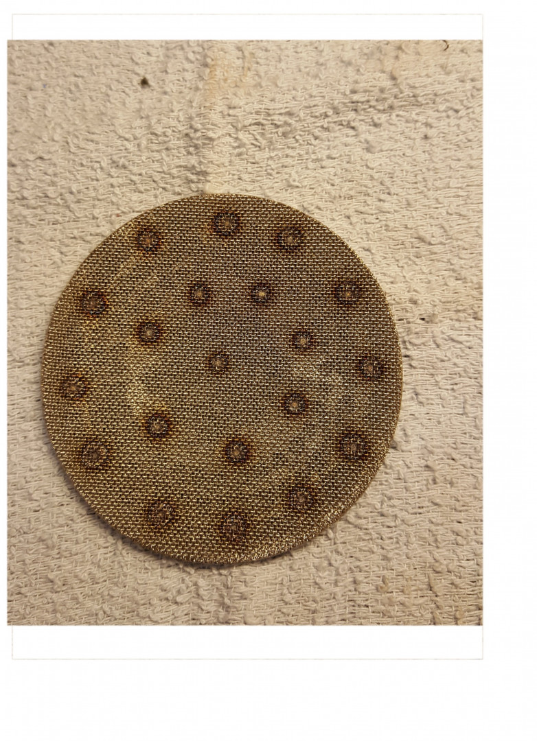 Reikälevy on rosteria ja sitä ei maalata. Peitä maalatessa maalarinteipilla. Jos haluaa maalata arinakupinkin niin reikälevy pitää ottaa irti ja sen irroitus vie aikaa noin 5 minuuttia. Sivuleikkurilla käännät reunaa ylos vähän kerrallaan ja noin 3/4 osaa ympyrästä niin maalaaminen onnistuu. Kaasuventtiili pois ja upotat happokylpyyn.