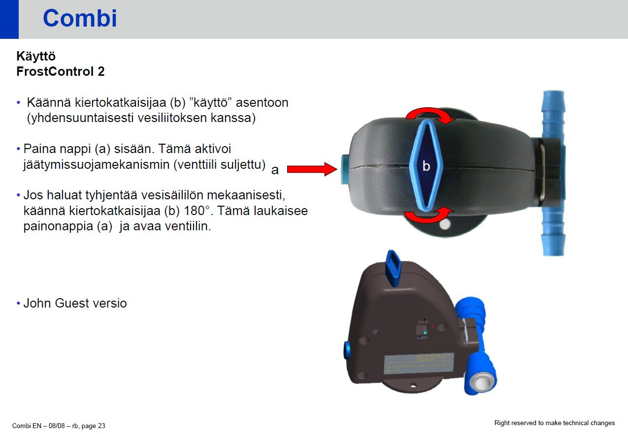 Sen valuttavan letkun kohdalla lattian yläpuolella on aika varmasti Truma Frostcontrol