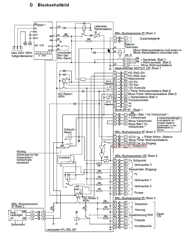 Periaatetta selkeyttänee kuva Schaudtin, eli EBL:ään suoraan liitettävän säätimen johtimista. Virta ajoakun latausta varten ryöstetään kuvassa näkyvällä liittimellä.