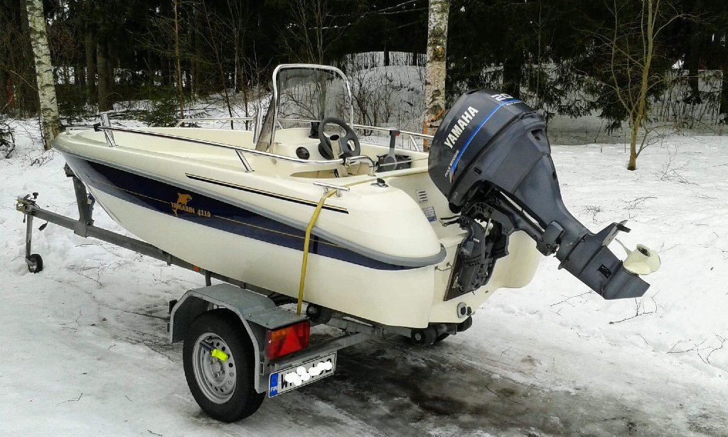 Btw, moottori kannattaisi pitää ala-asennossa kun kuljettaa traileria. Muuten nostomoottori voi ottaa itseensä. Onhan siinä lepuuttaja, joka käännetään kannattamaan moottoria. Ainakin isommissa on. Btw, moottori kannattaisi pitää ala-asennossa kun kuljettaa traileria. Muuten nostomoottori voi ottaa itseensä. Juu ilman muuta moottori alhaalla kuljetusasento. Kuvassa sähkötrimmi ajettu yläasentoon. Onhan siinä lepuuttaja, joka käännetään kannattamaan moottoria. Joo, kakkosnelonen muunmuassa. Kuvassa vain ei näy.. Kahvasta ajettavissa on yleensä joku lukitus yläasentoon. Mutta rasittaa toi rikin vipuvarsi peräpeilin rakennetta kun ajaa kunnolla kuoppaan, vaikka olis kuinka lukitustappia vasten. Eli ala-asentoon.
