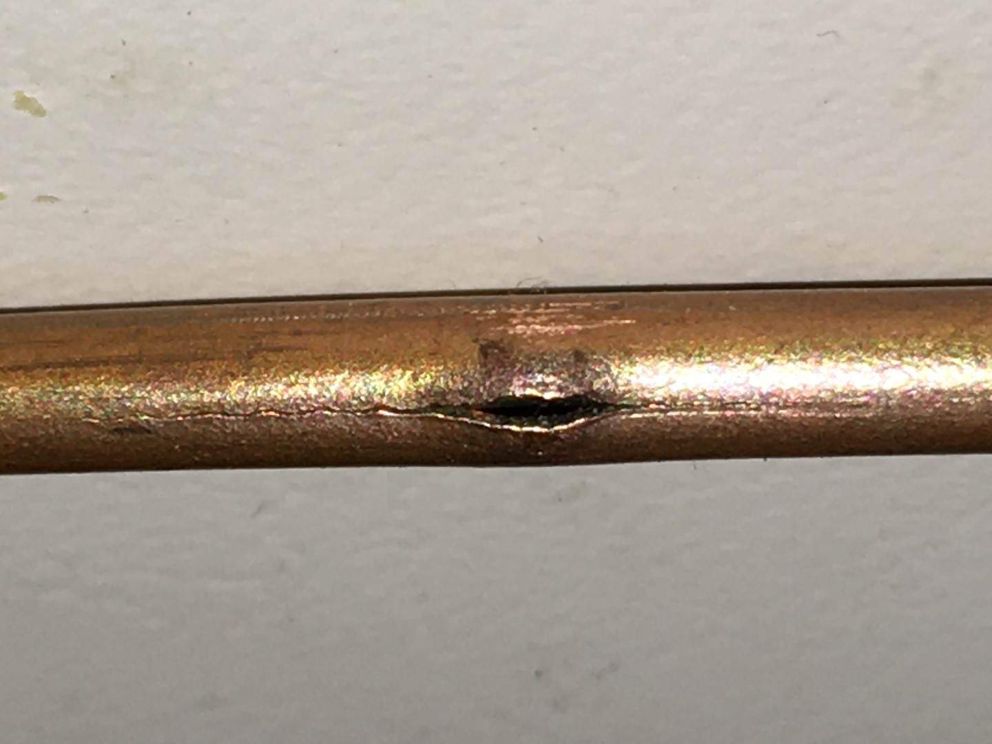 Kapillaarikytkimen kupariputkessa on pienen pieni halkeama, eli kaasut on karanneet ja kytkin ei toimi.