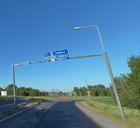 On se aina ollut Oulusta tullessa kahdelta Jyväskylään ja kuitenkin poistumis puolella vaan yksikaista. Semmoinen erikoisuus tuossa liittymässä että yhteen väliin oli muuttuvat autot keskellä kivikkoa, väliin jopa tuossa "ladossa"  Nyt tuossa ollut osa yläopasteista poistettuna toistuvien korkeiden tai pitkien erikoiskuljetusten takia, tuossakin videossa vilahtaa kentällä opasteet.