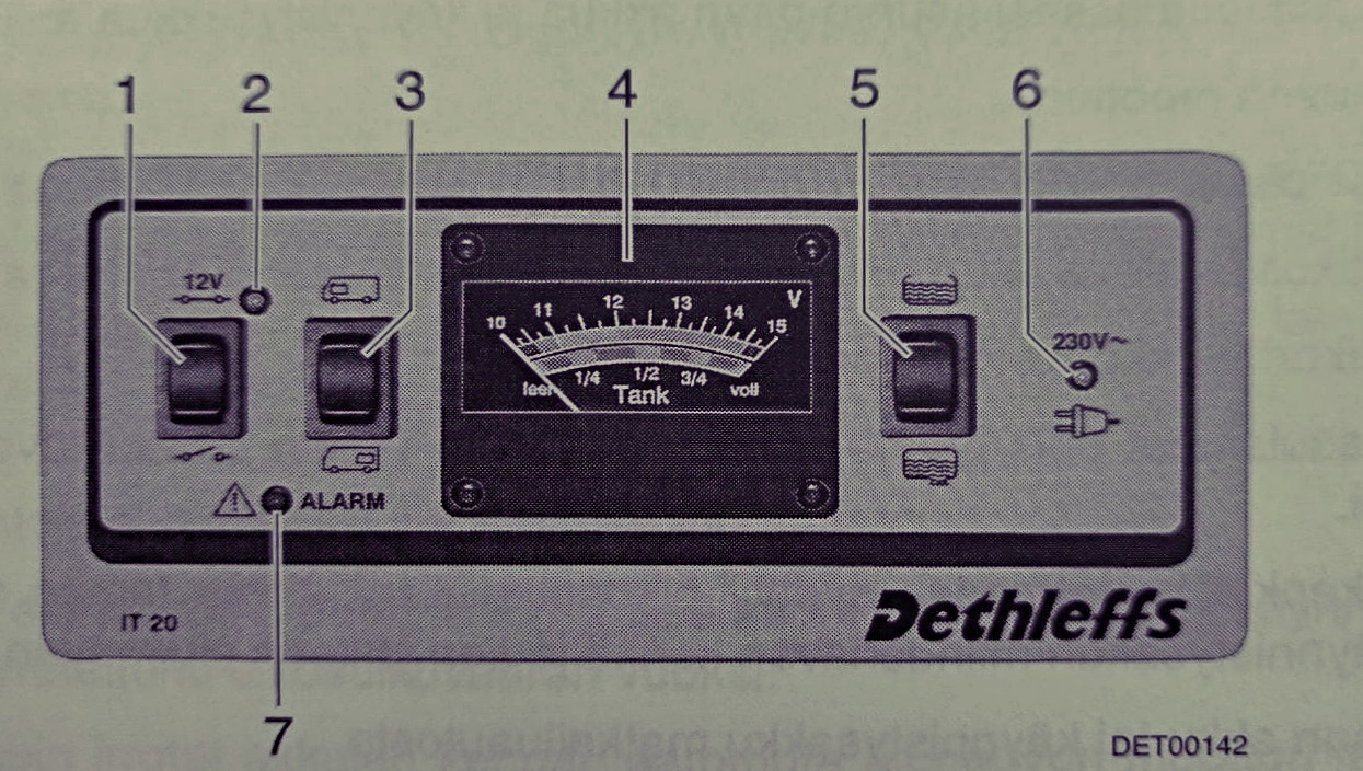 Sama vika minulla (Dethlefs 08 Fordin alustalla).  Volttimittari ei näytä mitään. Mittarin oireili ensin "pätkimällä" ja nyt sitten lakkasi toimimasta kokonaan. Ei näytä akkujen jännitteitä eikä vesisäiliöiden veden määrää. Muut toiminnot OK ja lataus pelaa. Mittaripaneeli on IT 20-3 ja sähkökeskus on ELB99. Irroitin mittaripaneelin ja tarkistin liittimet. Näkyvää vikaa ei ollut. Itse epäilen kondensaattorivikaa tai kosketusvikaa mutta en tiedä, että mistä kannattaisi tutkiminen aloittaa.