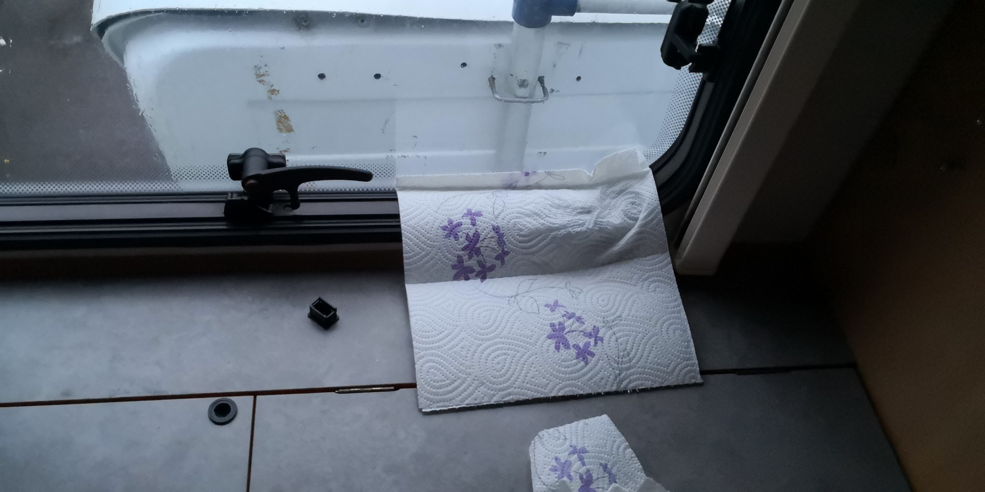 Suosittelisin näin sateella hankkimaan kevytpressun vuotokohdan alueelle. Jotta vältyttäisiin lisäkosteudelta vaunuun.