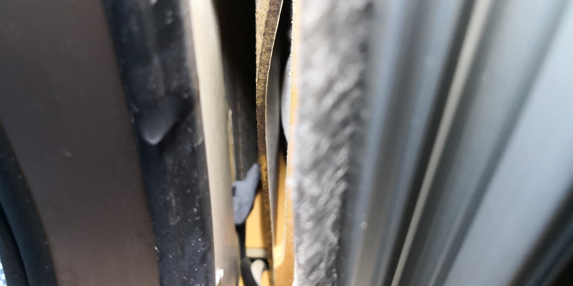 No ni hirvee kriisi päällä kun huomasin ekan vuodon nyt kun on tuota vettä tullut enemmän tuolta taivaalta. Vuotokohta on fillaritelineen yläkiinnikkeen kohdalla ja nyt pitäisi saada selville miten paha tilanne on ja mitä asialle pitäisi tehdä? Kun otin kuvia kännykkäkameralla niin kameran AI laittoi päälle asetuksen "vesiputos" :( mutta toivottavasti tilanne ei nyt niin paha ole.