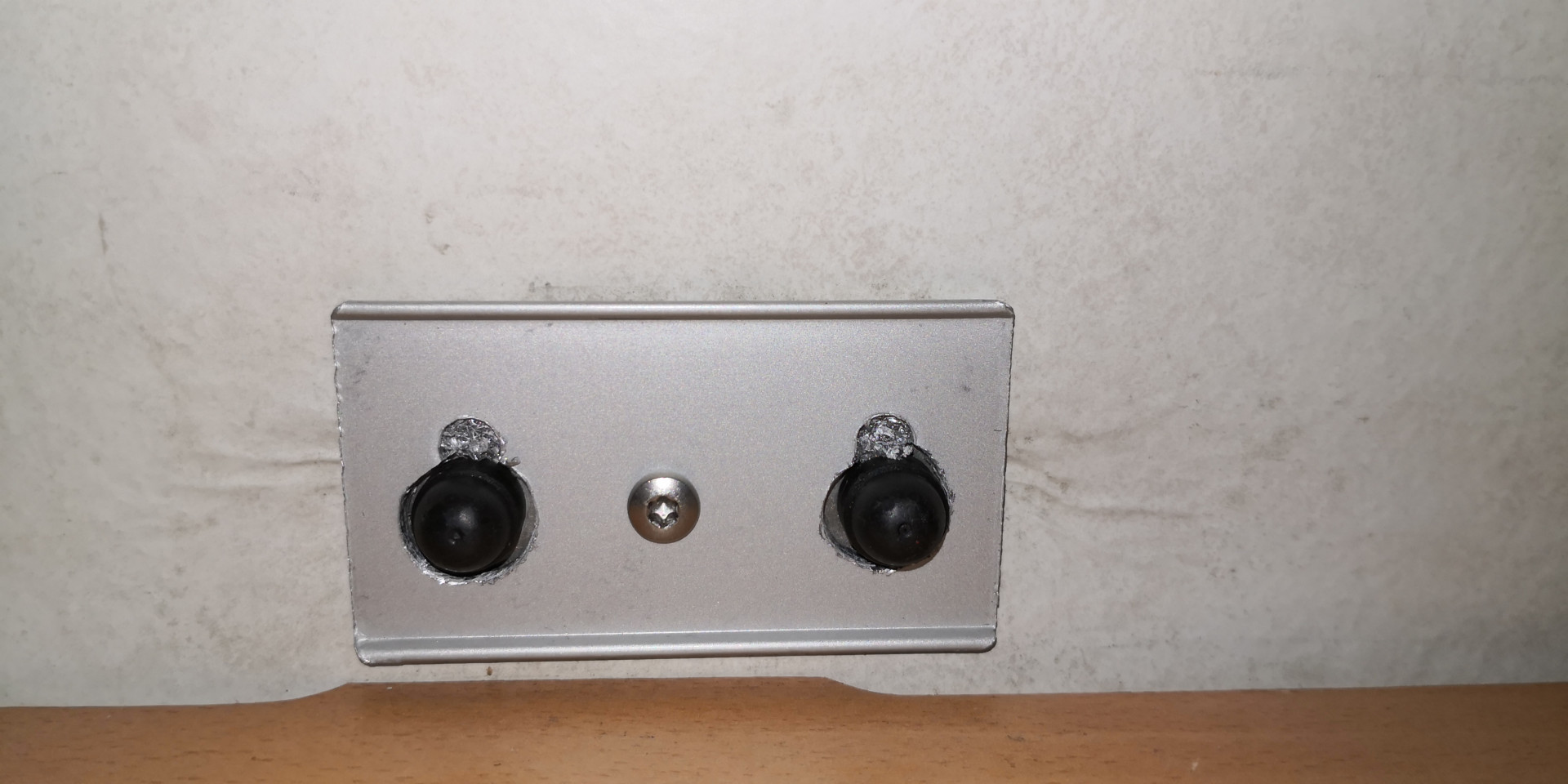 Tuon alumiini levyn ilmeisesti saa pois sisäseinästä poistamalla tuo ristipää ruuvi. Mitään virkaahan tuolla levyllä ei nyt ole - sen kuuluisi olla sisäseinään liimattu iso yhteinen aluslevy läpipulttien muttereille.. voi olla että tuossa hymerin rakenteessa ei ole runkoa minkä läpi ne pultit tulevat, ja siksi seinän paksuudelta on holkit pulteilla. Puristaa siten seinää aavistuksen, mutta ei lontolle. Sisäseinää ylhäällä tulee painetta (alhaalla vastaavasti ulkoseinään) kun fillarit tms telineessä painona.