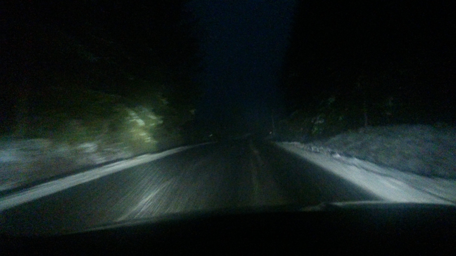 Tässä bi-xenonit räntäsateella. Puskat näkyy ihan hyvin ainakin.
