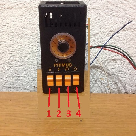 Juu 2 ja 4 päälle ja tuosta pyöreästä haluttu lämpötila. Jos siinä kerta on sähköpatruuna? Patruunassa voi myös olla jumppu 240v jolloin ei tarvii 4 painaa.