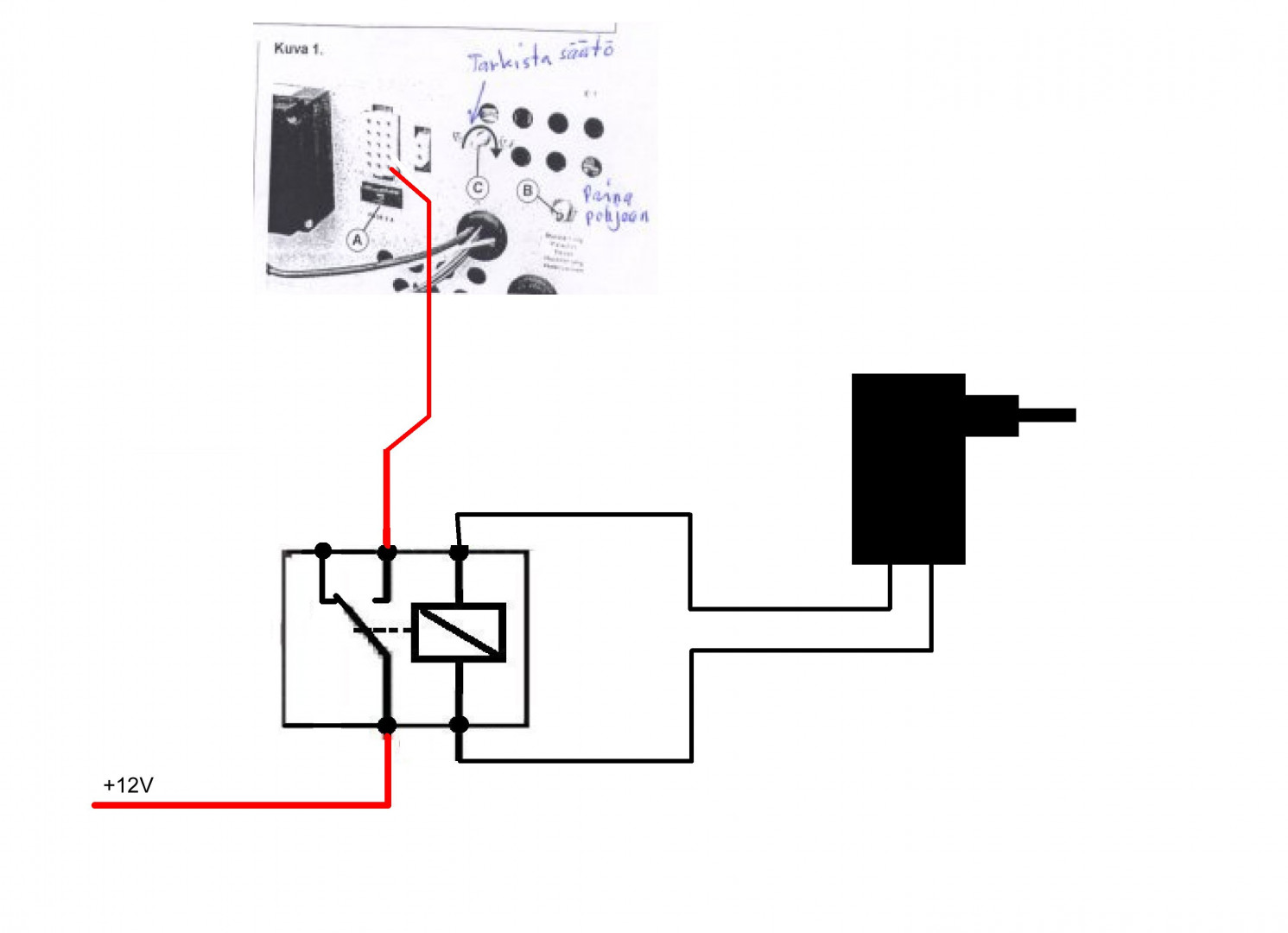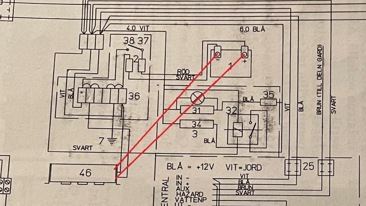 Minun vaunussa ei kuitenkaan akkulaturi ole kytketty kytkentäkaavion mukaisesti, vaan kytkentä on suoraan Mascot -laturista akulle. Akkukeskuksen katkaisija on alunperin ilmeisesti tarkoitettu erottamaan pelkästään akku muusta järjestelmästä, jolloin laturi edelleen syöttää 12V vaunuun. Minulla kytkentä on niin että akkukeskuksen katkaisija erottaa akun ja laturin muusta järjestelmästä, jolloin 12V syöttö vaunuun loppuu, mutta akun lataus jatkuu edelleen.