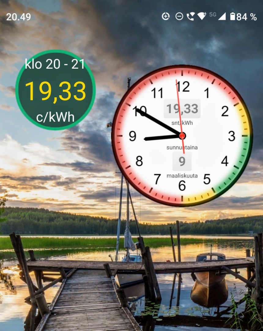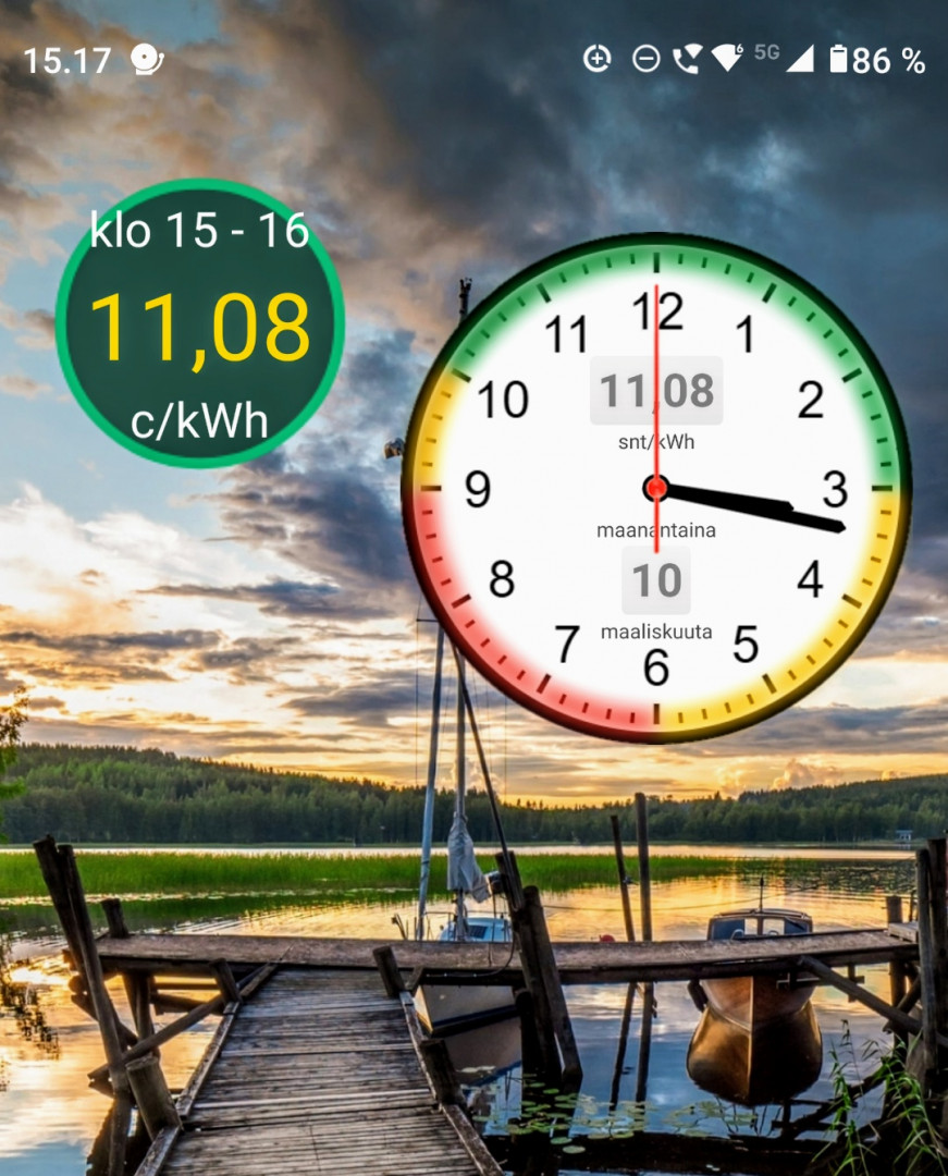 Nyt löytyi androidille todella fiksu sähkönhintakello, joka näyttää väreissä myös tulevat tunnit. Tätä olen oikein toivonut.