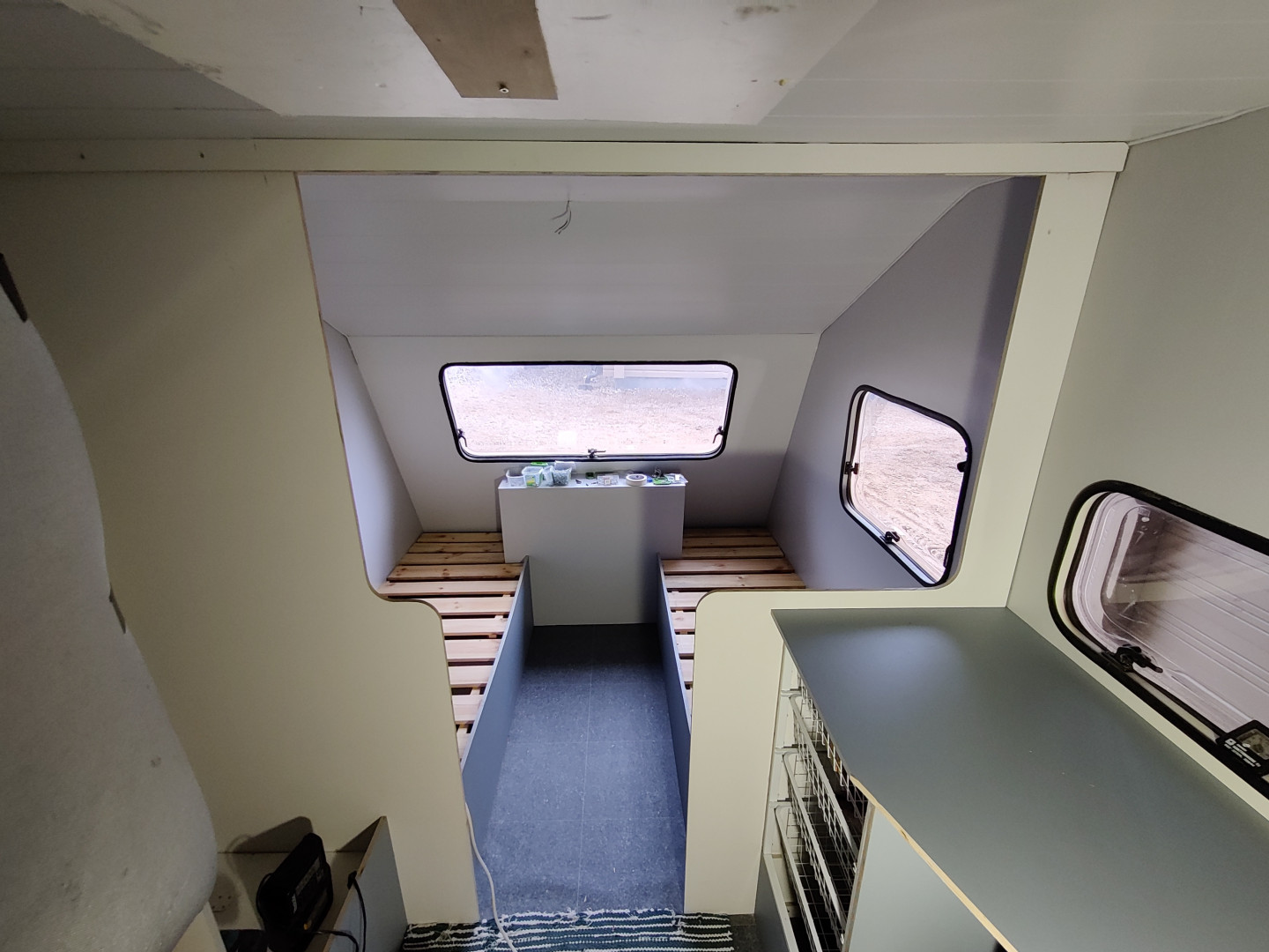Fiksun näkönenhän siitä tuli.Kiitos kehuista Kyllähän uusi maali ja värisävy kummasti muuttaa ilmettä, olipa sitten kyseessä 34 vuotta lämmitin tai joku samanikäinen eläväkin kohde ![]() Hommat siirtyy seuraavaksi "keulapiikkkiin". Sänkyjen teko on seuraavana vuorossa. Molemmille puolille saadaan 70 senttiä leveät ja noin 1,8 metriä pitkät sängyt. Toki keulasta kaasupullokotelon kohdalta pitää kaventaa, mutta jalat kyllä mahtuu aivan hyvin. Kun on pienet tilat, niin pakostakin on joutunut suunnittelussa tekemään kompromisseja, mutta kahdelle aikuiselle vaatimattomammatkin tai pienemmätkin tilat kelpaa. Sänkyjen väliin tehdään aikanaan 50-60 senttiä leveä pöytätaso. Eli tästä sopesta tulee yhdistetty mh/oh ![]() ![]() ![]() Sänkypaikat on jo jaettu, rouva pääsi valitsemaan ensin ![]() ![]() Liekkö noissa paikoissa paljon välestämistä ![]() Minä kun rakensin tuota armeijavaunua niin mietin kans sitä sänkyjen kokoa ja päädyin siihen että sängyt on "täysikokoiset" ja nipistin hieman keittiöstä, ihan sillä perusteella kun kuitenkin hyvät unet on reissussa kullanarvoisia ja eniten aikaa taitaa mennä vaunussa nukkuessa, aktiviteettien ollessa osin toisaalla.. Mutta nämähän on jokaisen omia päätöksiä kun itse itselleen tekee