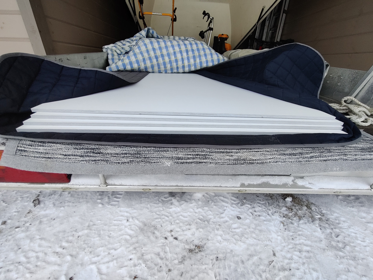 Ajattelin vähän purkaa tuntojani. Aina kaikki ei mene niin kuin suunnitellaan. Nyt kävi näin. Pari viikkoa ollaan odoteltu niitä valmiiksi tehtyjä kalusteiden osia. Nyt kärry on valmiina lähtöön, mutta kotiin tulee kokonaiset levyt. Päätettiin lopulta turvautua omaan pöytäsirkkeliin. No, miten tässä näin kävi. Starkilla on menossa muutokset, myös siellä sahauspalvelun puolella. Myyjä lupaili silloin kaksi viikkoa sitten laitteiden olevan toimintakunnossa viikon, kahden sisällä. Mutta eipä olleetkaan, oli tullut mutkia matkaan purunpoistolaitteid en kanssa. Myyjä laittoi sahauskaaviot naapuritontilla toimivalle kalusteverstaalle, ajatuksella, että he sahaavat osat. Sain tarjouksen työstä, mutta toivomaani toimitusaikaan en saanut selvää vastausta. Kysyessäni vielä lisätyönä kolmen muotoon sahattavan osan tekoa, hinta pomppasi pilviin. Tuli heti tunne, että nyt yritetään kusettaa meikäläistä oikein kunnolla. Ehkä ajattelivat, kun asiakas haluaa toimituksen parin päivän toimitusajalla, niin silloin on vara pyytää miltei mitä tahansa.  Mutta eipä onnistunut. Harmittaa vaan, kun meni hyviä työilmoja hukkaan odotellessa valmiita kappaleita. Nyt on parin kympin pakkaset. On vähän kuivat kelit lähteä kärryn kanssa liikkeelle. Mutta sittenpä on levyt kotona ja ootellaan lauhempia ilmoja, että päästään jalostamaan levyjä osiksi ja sitä myöten asentamaan paikalleen  Ja mikäs tässä, ootellaan kevään edistymistä ja päivien pitenenemistä