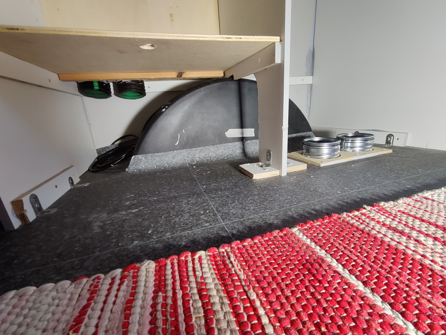 Kaappi on nyt kaikilta osiltaan asennettu, aikanaan sitten kytketään kaasu ja 12 V. Aika tarkan mittauksen vaati tuo ilmanohjauslevyn asentaminen niin, että kaapin ollessa etuosastaan oikealla syvyydellä, kaapin tiivistepinta painautuu tiiviisti levyä vasten. Valmistajan suositusten mukaiset tiiveysvaatimukset pitäisi nyt olla kunnossa.