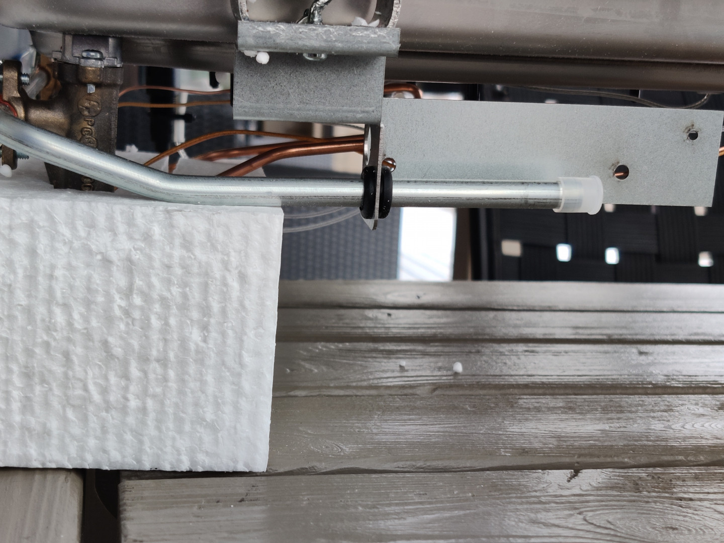 Kaasuputken pää on harmittavasti väärään suuntaan.  Mutta kai tuosta pääsee kulmaliittimillä suht koht helposti kääntämään suunnan tuonne alas ja vasemmalle jakotukille päin.