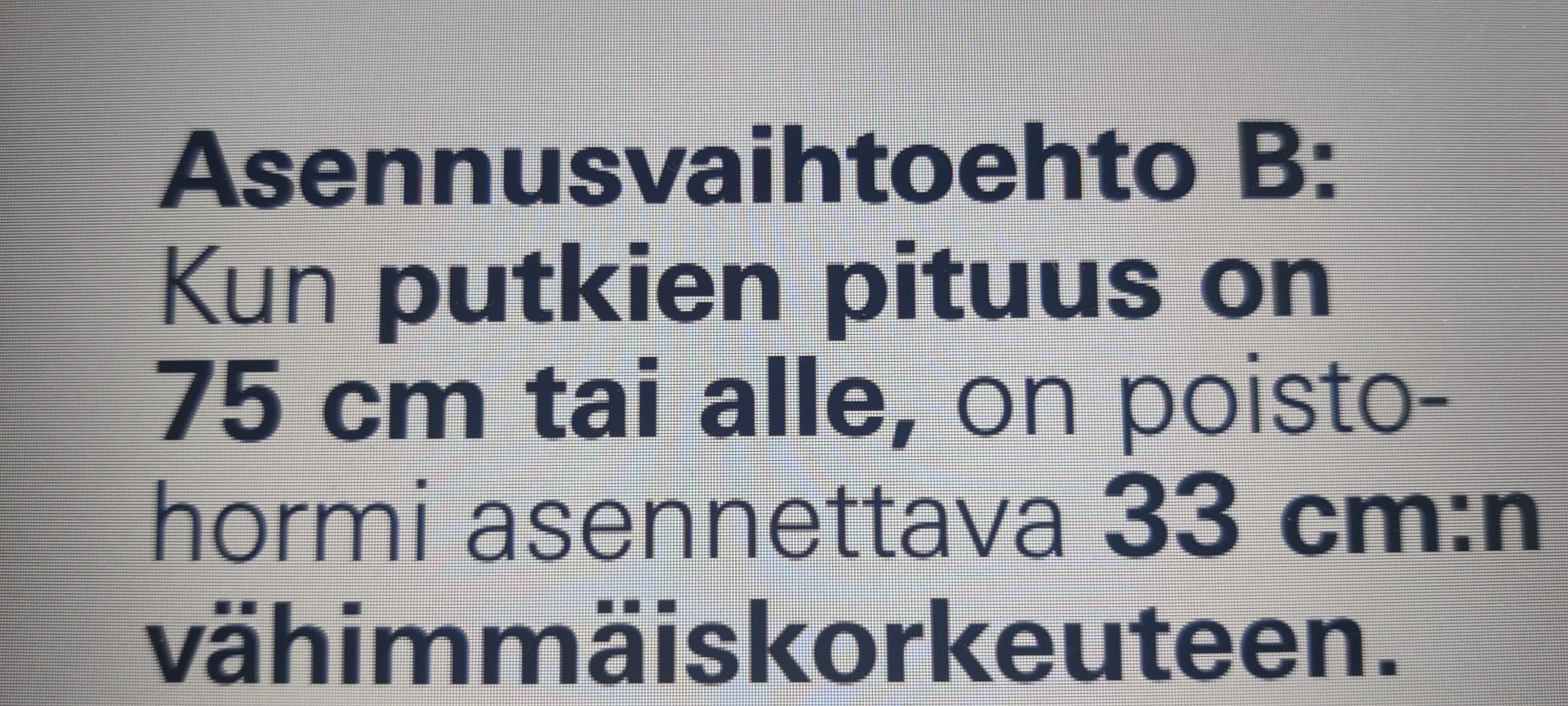 Taas pitää todeta, että "Ei päivää, että ei jotain uutta"  Nyt ollaan oltu Truman kimpussa. Uusi lämmitinkin on juonitellut. Välillä on toiminut ja taas välillä ei. Sellaista "humputtelua" liekin palamisessa ja välillä sitten tehnyt tenän kokonaan. Eilen sitten oli hieman tuulinen sää. Taas sama juttu. Eipä oikein pelittänyt. Kaivelin uuden lämmittimen asennusohjeet ja sitten alkoi pikkuhiljaa ajatukset mennä siihen malliin, että lämmittimen palamisvaikeudet saattavat johtua väärin asennetuista paloilma- ja poistoilmaputkista. Ohjeissa kerrotaan hyvin tarkat kriteerit putkien pituudelle/korkeudelle ja keskinäiselle asemalle. Harhauduin silloin aikanaan vanhaa lämmitintä asentaessani aivan väärille poluille, kun ei ollut käytettävissä lämmittimen ohjeita, enkä vain hoksannut niitä hakea, olisihan ne ollut katsottavissa tuolta netin syövereistä. Vanhan jääkaapin poistoputken paikka oli sopivast lähellä lämmitintä ja paloilman päätin ottaa vaunun alta. Siinä meni pahasti pieleen verrattuna ohjeisiin. Ei muuta kuin purkuhommiin. Ohjeiden mukainen vaihtoehto B, näytti onnistuvan. Nyt putket ovat täsmälleen keskenään oikean mittaiset ja vaaditulla korkeudella . En sitten tiedä onko taikuutta vai tiedettä. Nyt lämmitin on koekäytössä ja toimii moitteettomasti. En vielä ole tehnyt lopullisia asnnuksia seinään. Jotenkin on vain vielä hieman epäuskoinen olo, mutta kai ne saksalaiset ovat testanneet. Itse ajattelen nyt, että kysymys on varmaan jotenkin putkien keskinäisestä painesuhteesta/tasapainosta-mene ja tiedä   Tämä mitoitus sopi meidän tapaukseen.  Sen verran aion poiketa noista ohjeista, että asennan putket rinnakkain, eikä alekkain. Ajattelen, että ei se lämmitin tiedä, ovatko putket päällekkäin vai vierekkäin   Nyt on koekäyttö menossa. Sen verran tuo putkien asennuspaikka on "laiton", että turvatetäisyydet oveen ja ikkunaan eivät toteudu. Mutta omaan käyttöön saa passata näinkin