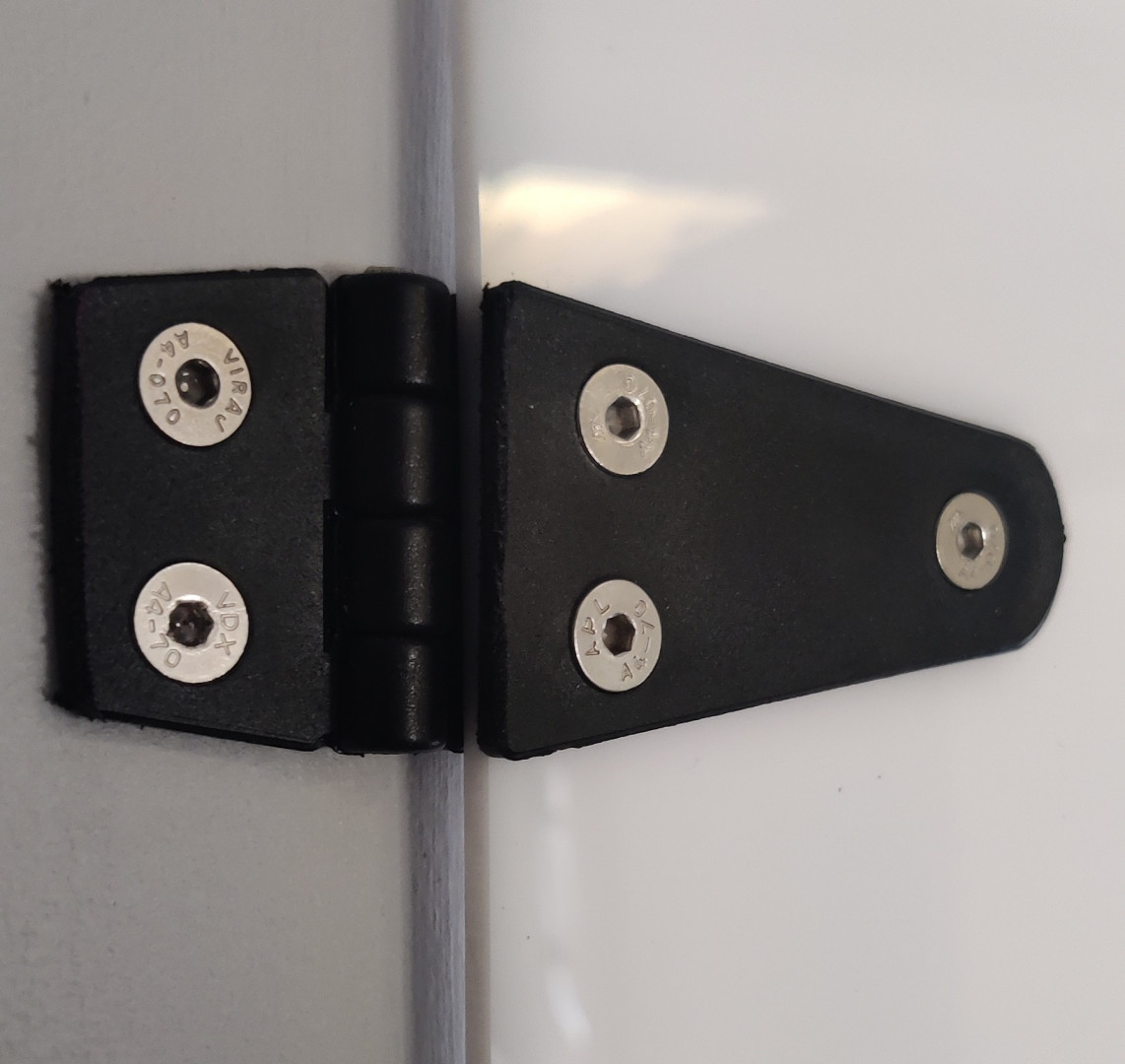 Retron "modernisointi" etenee  Tuuletin on paikallaan asennettuna kattoluukussa. Kauan piti katsella noita tietokonetuulettimi a eri tarjoajilta ennenkuin löytyi sopiva tuohon meidän tarkoitukseen. Sopiva löytyi tsekkiläiseltä Ampul System verkkokaupalta. Tuuletin on alkuperäisestä suunnitelmasta poiketen usb-liittimellä varustettu, jolloin varsinaista kytkentää vaunun 12V verkkoon ei tarvita. Tuuletin on 5 V ja 0,24 A. Puhaltimen teho on n.110 kuutiometriä/tunti. Vaunun tilavuus on n. 20 kuutiota, joten ilma vaihtuu vaunussa n. 5 kertaa tunnissa. Tehokkuutta voidaan säätää säätimellä, jonka hankin tuolta samasta paikasta. Normaali huoneilman vaihtovaatimus on muistaakseni n. kerran kahdessa tunnissa. Nyt vain pitää ootella helteitä, että päästään testaamaan tuuletinta tositilanteessa. Se taitaa vain jäädä ensi kesän helteille  Tuulettimen kiinnityksen toteutin nippusiteillä. Ennen asennusta käytin tuuletinta täydellä teholla 7000mAh:n akulla. Tuuletin toimi reilun neljä tuntia ja aivan loppuun en tyhjentänyt akkua. Tuosta voi laskea käyttöajan eri kokoisilla akuilla. Oletan myös, että tuuletinta ei tarvitse käyttää täydellä teholla, kunhan lämpötilan saa tasaantumaan. Hintaa tuli rahtikuluineen 32 euroa  Oviprojekti etenee myös. Tarjous oven tekemiseksi 4 mm:n polykarbonaatista on nyt saatu ja myös kuljetusyritys ja tarjous kuljetukselle on valmiina. Pitää vain alkaa tekemään tilaukset. Saranat ja salvan olen löytänyt myös. Ovelle tulee hintaa kaikkinensa noin 500 euroa. Mutta kun isäntä on saanut päähänsä, että vessassa istumiseen pitää saada enemmän tilaa, niin ei siinä sitten auta muu kuin hankkia uusi ovi     Asennus oli helppo toteuttaa, eikä tarvinnut rikkoa mitään luukun rakenteita  Piirros oven uudeksi muodoksi  Paras edullinen vaihtoehto saranoiksi löytyi Puuilosta. Rst-saranat, jotka vaikuttaa riittävän tukevilta.  Edullinen salpa löytyi Vapaa-aika.comilta