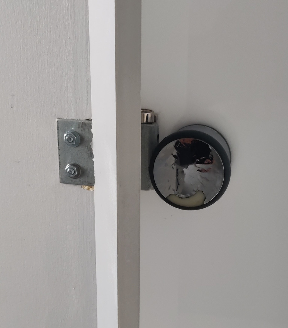 Ei ne aina suomalaistenkaan verkkokauppojen kuvat tuotteista pidä paikkaansa. Näin kävi näille Puuilon saranoille. Kaupasta ei löytynytkään kuvan mukaisella reiityksellä olevaa mallia. Kuulemma jostain vain oli väärä kuva laitettu verkkokaupan sivulle. Vastaavaa mallia ei löytynyt Puuilosta, joten seuraavana marssittiin Bauhausiin. Sieltä löytyi sopiva malli ja oikeanlaiset uppokantaiset ruuvit + hattumutterit. Myös kahvamalli hylättiin ja tilalle valittiin kaksoiskuulasalpa ja molemmin puolin ovea laitettavat lasioven vetimet. Niin kuin olen aiemmin maininnut noista kokemuksien kautta tulleista muutostarpeista mm. pöydän alla olevan jalkatilan puutteesta. Alkuperäistä remonttia tehdessä vanhan kaapin käyttö tuntui hyvältä ratkaisulta, mutta ei enää. Kaappi on ahtauttanut kovasti pöydän alle jalkojen asettumista. Tänään kaappi sai lähteä  Onneksi kaapin alaosa oli ainoastaan ruuveilla kiinni lattiassa, joten mattoon ei jäänyt kuin pienet ruuvin reikien paikat. Mutta yläosa olikin sitten hankalampi irrottaa. Laitoin asennuksen aikana noin niinkuin "varoiksi" Sikan 221- massaa kaapin ja pöydän kannen väliin. Se oli virhe. Nyt kaappi piti irrottaa väkivalloin ja kaapin yläosa jäi pöydän alle  No, kaappia pitää muutenkin modifioida tuohon uuteen paikkaan sovitettuna tuon rulokaapin viereen. Pöytä taitaa saada uuden jalan noin 60 mm:n rosteriputkesta... ` Ensi viikolla tapahtuu muutenkin hyviä asioita: Ovi on luvattu valmiiksi tiistaille ja kuljetuksineen uskoisin oven olevan asennusta varten kotona loppuviikosta, mutta katsotaan miten asiat etenee...  Monta kertaa piti jalkaa vääntää pöydän alle ennen kuin kaappi sai lähtöpassit  Joskus on enemmän kuin hyvää tuuria noissa mitta-asioissa. Kaappi sopi paikalleen paremmin kuin hyvin. Vaatii tosin hieman muutostöitä ja uuden maalin pintaan.