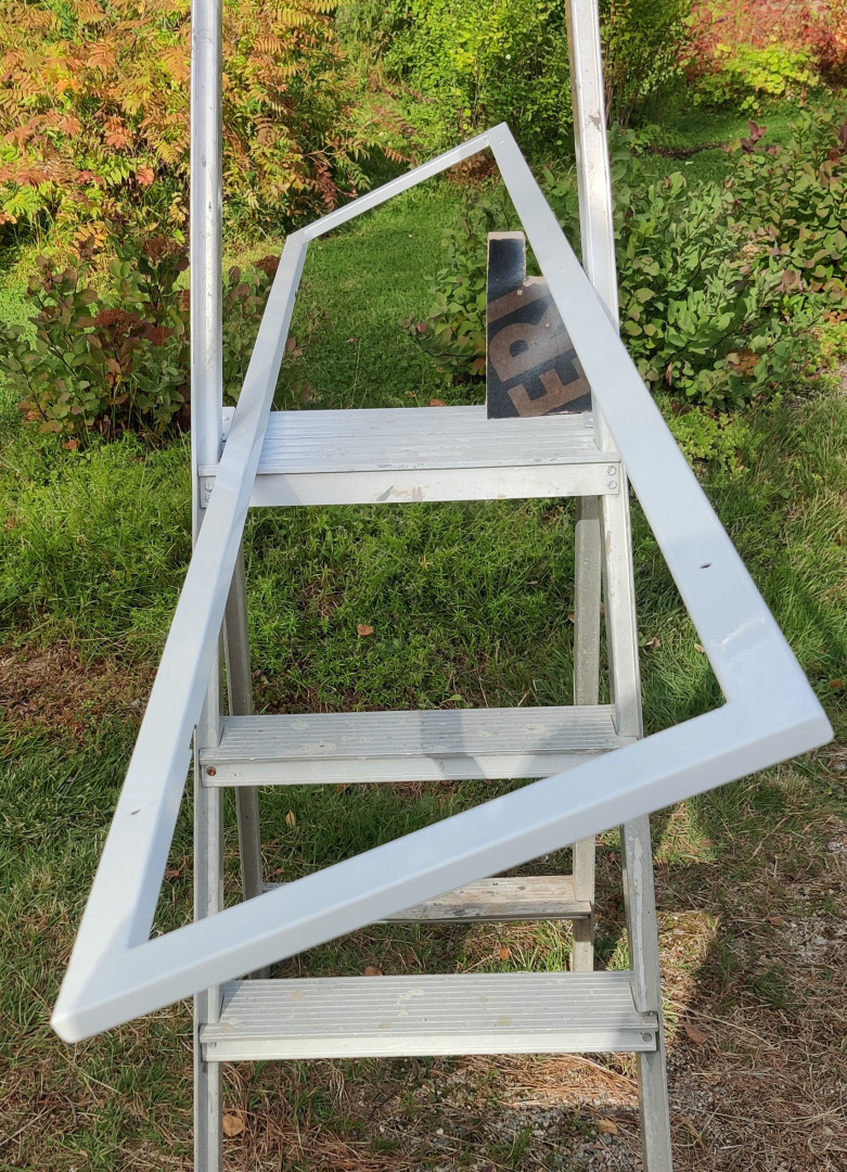 Vaikka jo aiemmin totesin ovesta, että lopputulos on onnistunut. Ei kuitenkaan aivan täydellinen, nyt kun ollaan hetken aikaa katseltu ja koekäännelty ovea. Nimittäin oven ns. kiertojäykkyys ei ollut riittävä, johtuen oven muodosta. Yrjö tuolla aiemmin arvelikin tätä samaa asiaa. Piti alkaa miettimään asiaan parannusta. Parhaalta ratkaisulta tuntui tehdä oven sisäpuolelle jonkinlainen jäykistävä kehikko. Ei muuta kuin lähimpään kauppaan, josta löytyi sopivaa materiaalia. Valitisin materiaaliksi huonekaluputken kooltaan 15 x 30 x 1,5 tavallisesta teräksestä. Omat laatuvaatimukset tuollaisen kehikon tekemiselle on korkeat, joten työhön piti keskittyä aivan tosissaan. Käytössä oli ainoastaan puikkohitsauskone ja lisäaineena tällä kertaa 2,5 mm rst-puikko. Mutta kyllähän se onnistuu kun ei pelkää eikä hermostu  Pintakäsittelyn tein Mastonin kirkkaalla aerosolimaalilla. Sopivat ruuvit löytyivät puretun kiinalaisen puutarhakaluston rungosta. Sitten vaan vaimon kanssa asennushommiin, niin kuin yleensäkin teemme yhdessä. Useita töitä ei vaan onnistu yksin tekemäänkään. Nyt voidaan sanoa lopputulosta paljon paremmalla mielellä onnistuneeksi   Maalaus onnstui ulkona hyvin tyynen sään vallitessa ja auringon paisteessa  Ihan mukavasti onnistui kulmien teko   Kehikko näkyy himmeästi oven takaa, mutta ei häiritse kokonaisuutta. Tummat ruuvin kannat sopivat hyvin.  Nyt ovi pysyy hyvin kuosissaan