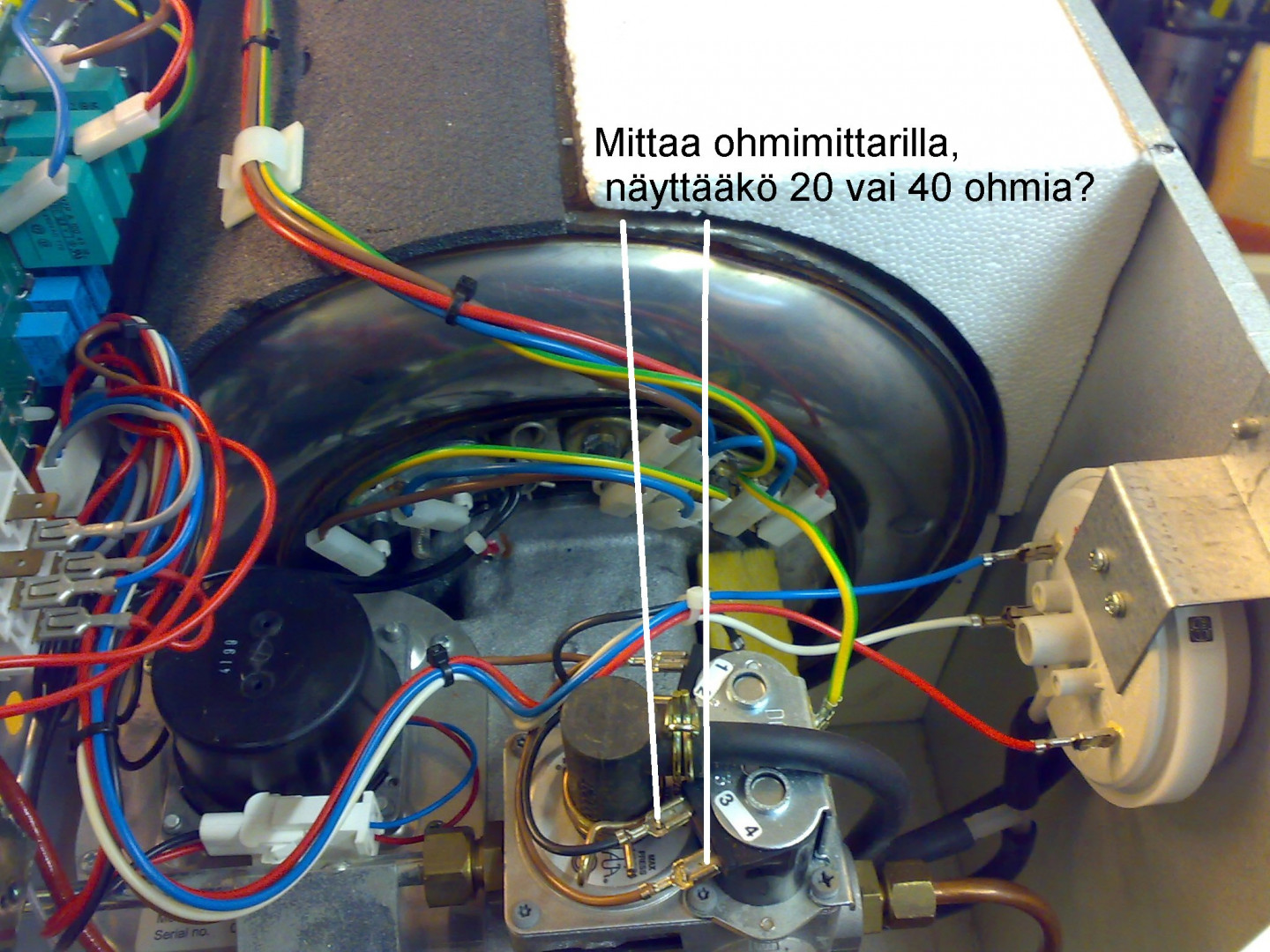 Juu moi taasen, Mitailin pannu sammuksissa nuo solenoidikat ja yleismittari oomi asennossa 200-asentoon ja pikkuhiljaa se asettui 20 oomiin.  Kuuntelinki niin kalahdus tulisikin noilta soleilta kohdin. Tikitystä kipinää kuuntelin niin eitulis mustalta boxilta vaan enemminki palopesä suunnilta.Karukampe .