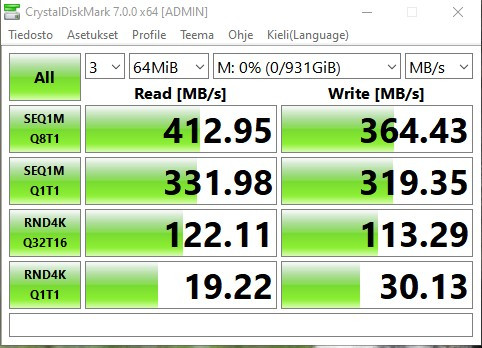 Käyttöjärjestelmä ja softat on tuolla Samsungin ssd:llä.Pitihän siitäkin ottaa nopeustesti.