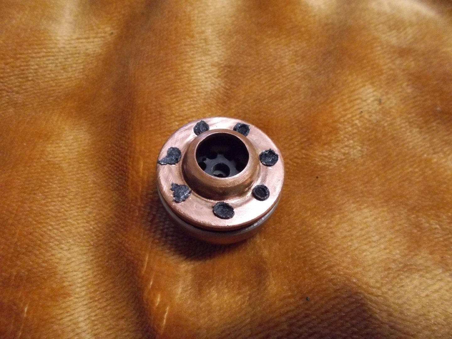 Syyksi kolinalle paljastui siipipyörän väljyys akseliin eli pääsi heiluun sen verran että otti runkoon kiinni. Tuon "uuden" pumpun mukana tullut siipipyörä näytti käyttämättömältä mutta siitä puuttui se kuparinen osa ja se näkyikin olevan sulatetuilla muovitapeilla kiinni joten ei muutakuin kokeileen että onnistuuko vaihto. Mattoveitsellä vuolin muovitapit irti ja meisselillä vähän käänsin niin tuo kuparinen osa lähti helposti irti. Passasi myöskin hyvin paikoilleen toiseen puolipalloon niin muutakuin kolvilla sulattaen nuo muovitappien päät niin pysyy läjässä tuo. Nyt ei ainakaan irtaallaan pitänyt enää kolinaa eli ilmeisesti korjaus onnistui.