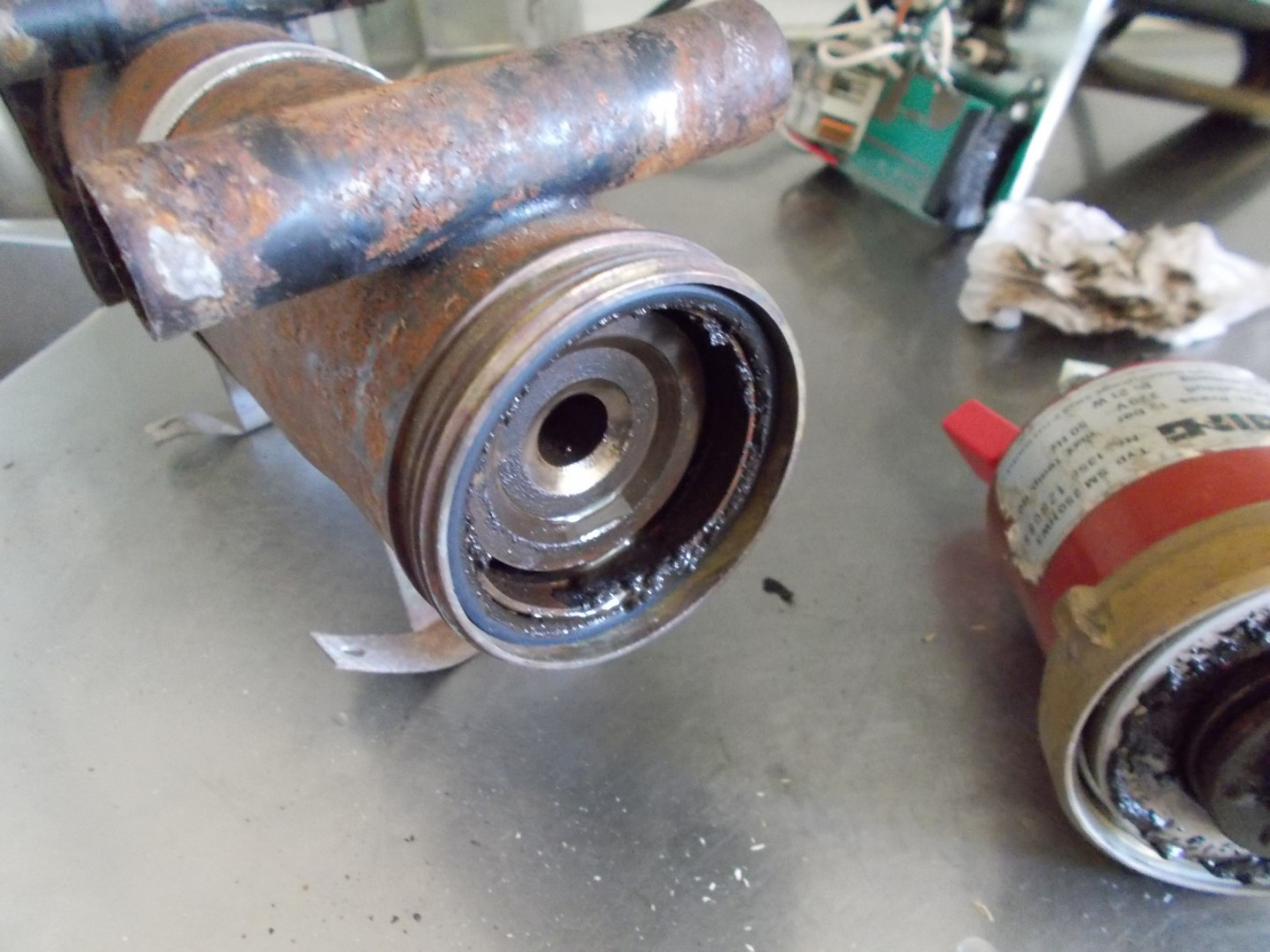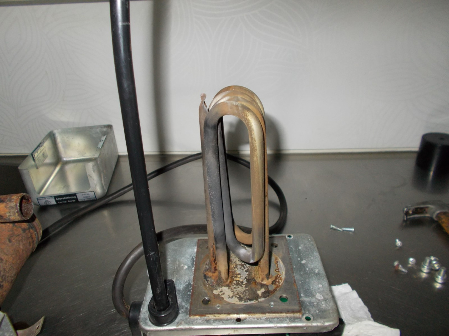 Samalla kun tuo vielä oli käsissä niin purin tuon patruunan ja putsasin vuosien sakat pois mitä olikin melko paljon. Vastuksetkin oli melko mustat mutta lähtivät lämpimällä vedellä jo aika puhtaaksi. Tuo pumpun ns. siipipyöräkin näkyy ottaneen kiinni pumpun runkoon kun on jäljet jäänyt. Tuon siipipyöräkin oli melkein tukossa tuosta sakasta ja oli sinne joku havukin eksynyt.