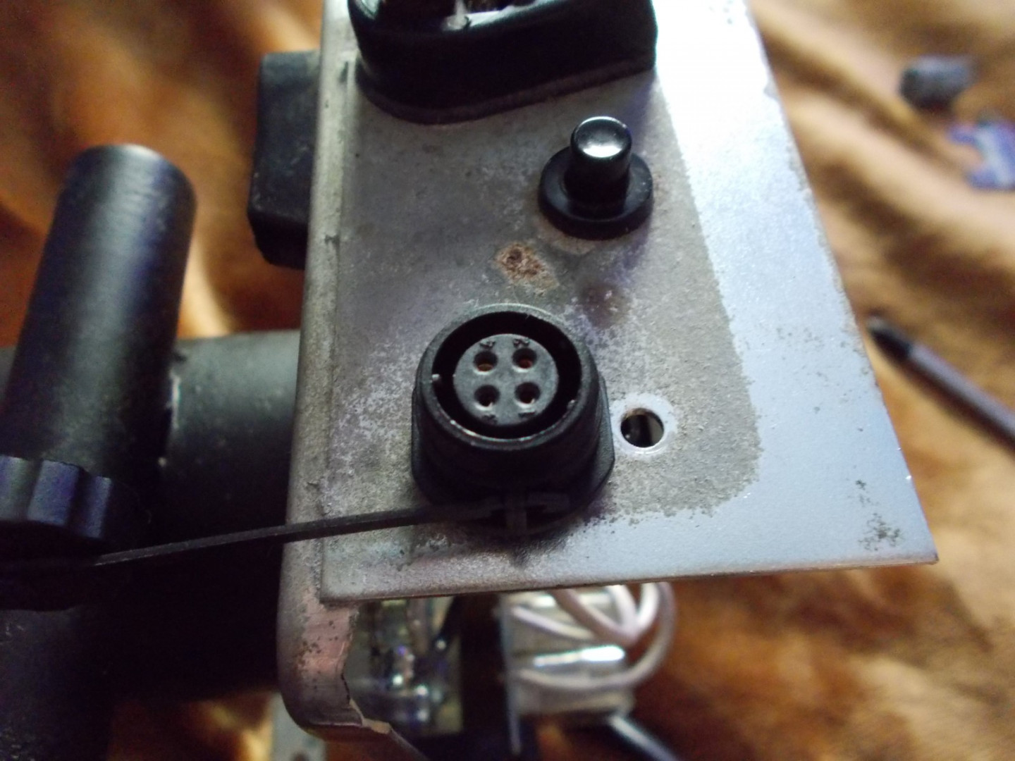 Tuolle 12V liitännälle kun ei ollut sopivaa vastakappaletta niin vaihdoin tuohonkin samanlaisen 4-napaisen liittimen kuin mitä pannussakin on. Kävi jopa tuohon samaan reikään kuin alkuperäinen niin ei tarvinu niiltä osin alkaa muokkaan.
