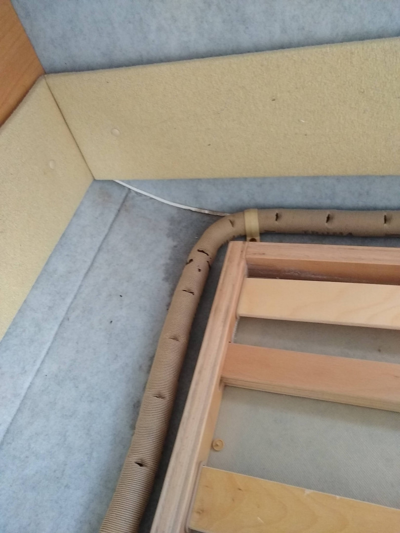 Tuota putkea saa myös valmiiksi reiitettynä, jakaa lämmön tasaisemmin. Meillä ulkoseinää kiertää sellainen sängyn vieressä