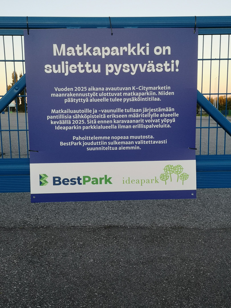 En nyt saanut linkattua mutta googleta Ideapark Best Park tulee tiedote että saa yöpyä Ideaparkin parkkipaikoilla. Keväällä tulee pantillisia sähköpisteitä vaanareille. Louheen omat saippuat sitten mukaan vink vink..