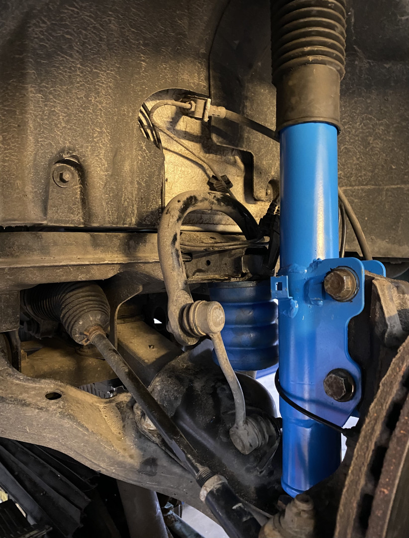 Niin, tuo uretaanitötsä koskettaa/hieman puristuu auto kuormattuna ihan normiasennossa alatukivartta vasten. Jos komposiitti lehtijousi on jo ilman uretaaneja kovan oloinen, ei tuo "uretaanilisäjousi" yhtään pehmennä jousitusta vaan koventaa sitä. Alkupereräinen kumitönäri on siis viraton normiasennossa.