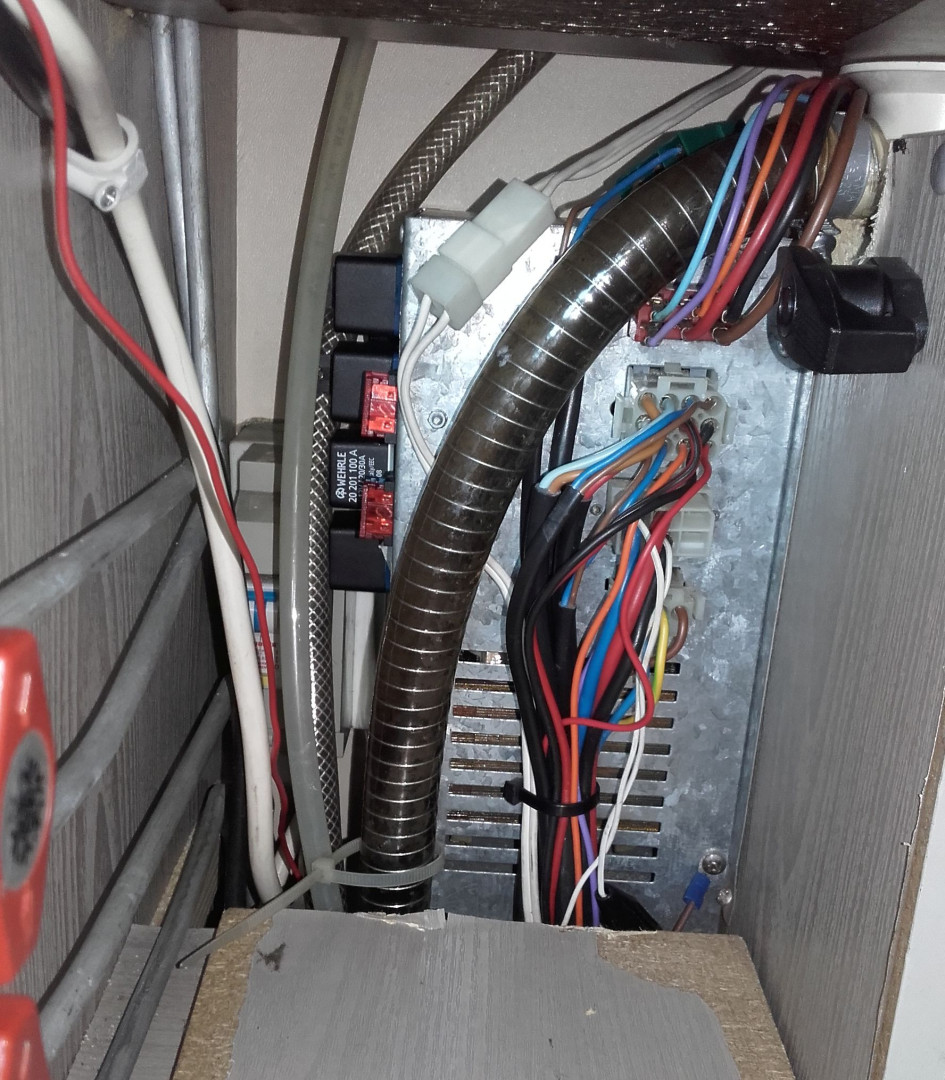 Nyt tarvitsis apua. On tuollainen Fiatin 1994 alustalle rakennettu matkailuauto, jossa ei jääkaappi toimi. Jääkaapille menevään johtoon ei tule 12 volttia, oli auto käynnissä tai ei, eikä myöskään tuohon kaasun sytyttimelle menevään johtoon, oli auto käynnissä tai ei. Sulakeeet on vaihdettu, sekä releitä olen vaihtanut ristiin. Tunnistaako kukaan mikä merkki tai malli tuo ohjausboksi on,?