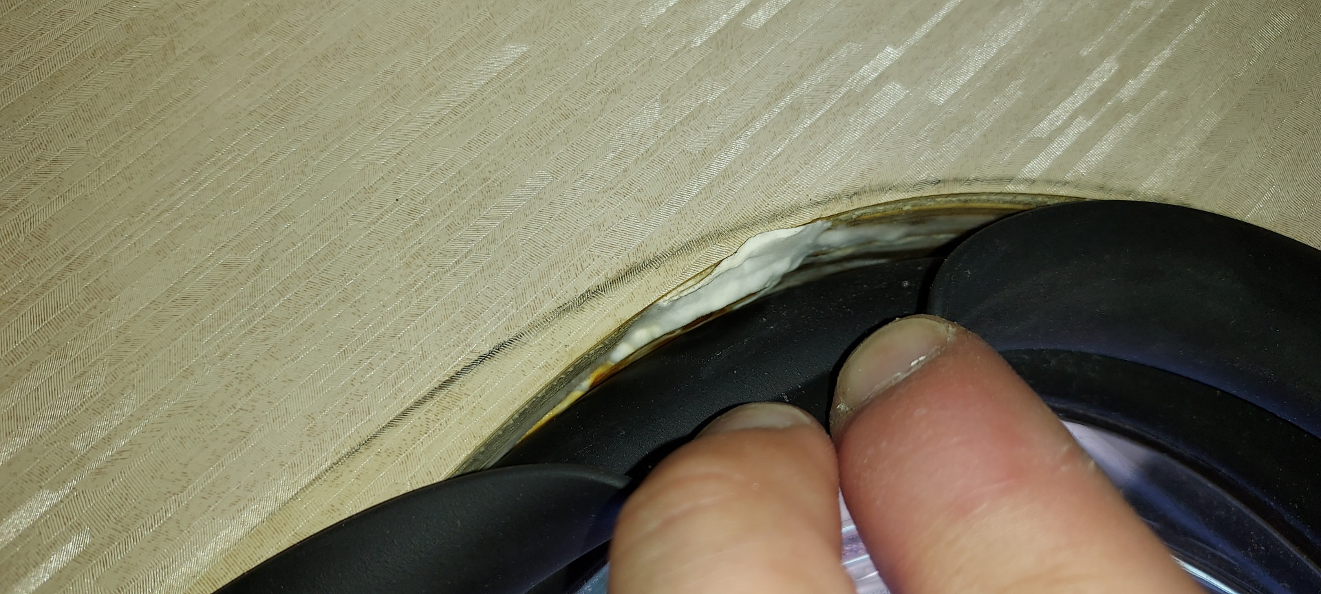 Ikuisuusprojekti jatkuu,  :) mitähän ikkunan alhaalla kumitiivisteen välissä mahtaa kuvissa näkyvä valkoinen olla? Eristeet ym kuivia, ja ikkunan sisällä on huurtunutta vettä. Onkohan hometta tms, ei haise miltään . :o