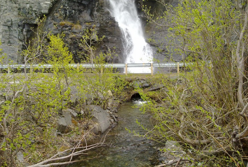 Helatorstain aikaan, toukokuun lopulla viivähdin pari vuorokautta ko. paikalla. Putouksen kuohut olivat parhaimmillaan. Puron pohjoispuolella olevaan puskaparkkiin ei pääse enää, ovat laittaneet viime kesänä kaiteen, joka estää autolla ajamisen.