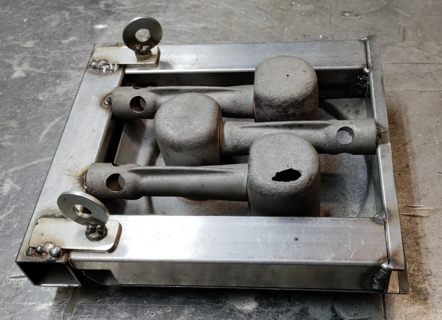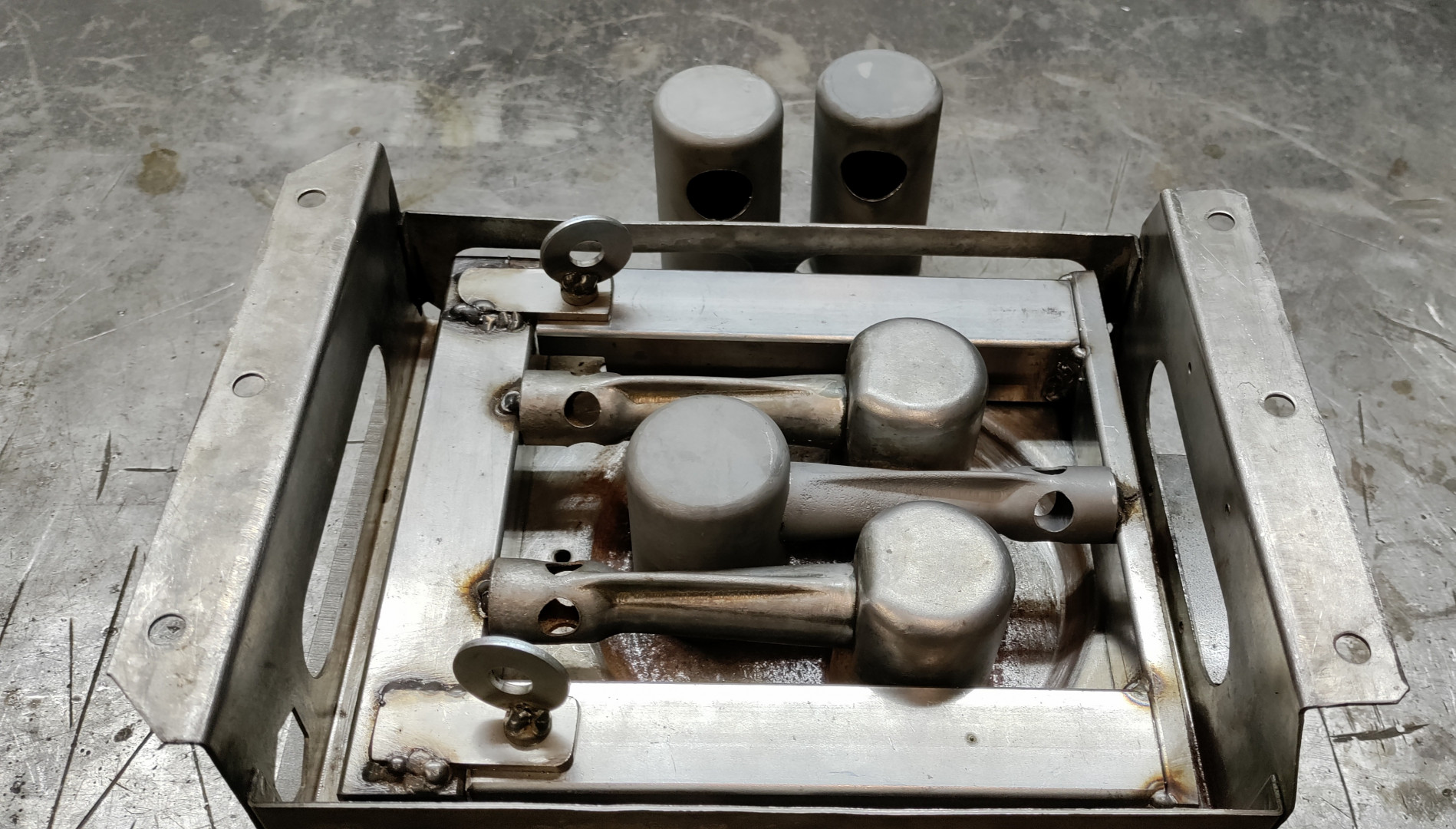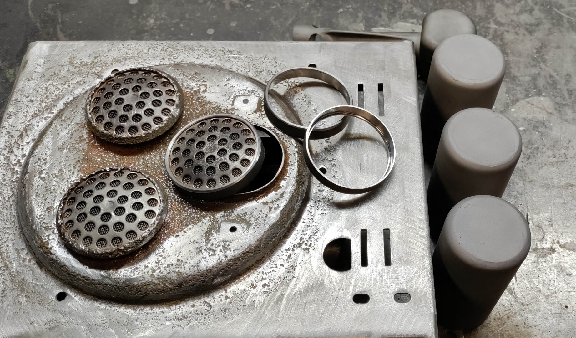 Aloin tekemään muottia piipun yläpään arinan pesän tekemiseen, silloin jää tuo ongelmallinen liitos pois ja arinasta saa helpommin vaihdettavan kuten alkuperäinen.