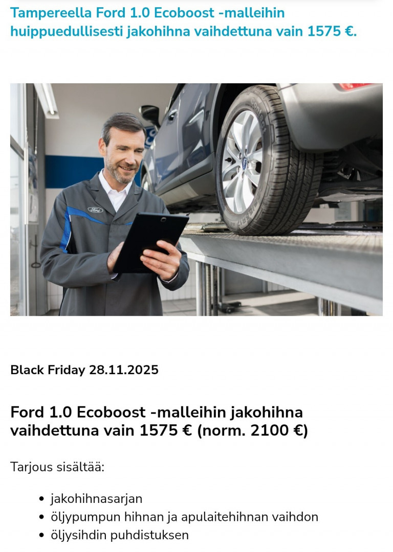 Jos toi Autokeskuksen hihnanvaihtotarjous on oikeasti huippuedullinen, niin huhhuh. 😮