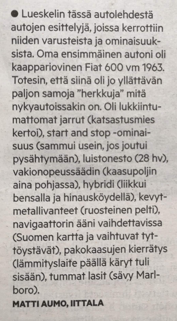 Ei riitä enää ulkomaalaiset komponentit. Varmaan absit julistetaan turhiksi ominaisuuksiksi. ![]() Uusiin Ladoihin ei enää tule ABS-jarruja.Eiköhän niissä ole lukkiutumattomat jarrut ihan ilman ABSiakin ![]() Eiköhän niissä ole lukkiutumattomat jarrut ihan ilman ABSiakinOli ainakin joskus nuorena juippina kun sellaisen omistin ja kävin valtionkonttorilla vonkaamassa ajolupaa vuodeksi eteenpäin. En saanut kun ei jarrut lukkiutuneet. ![]() |