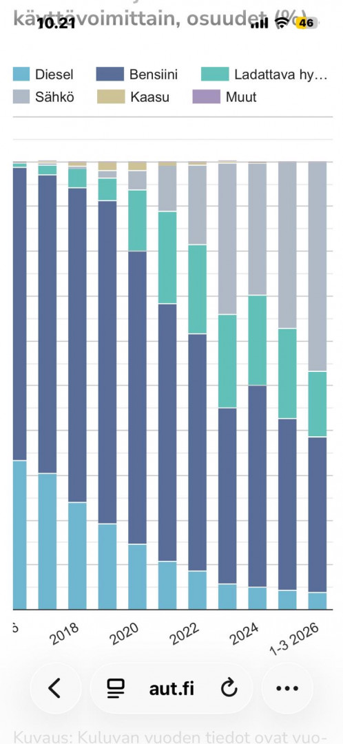Kovaa rummutusta pitävät itsestään pieni porukka. Ja tilastoja luetaan parhain päin. 😮 "Täyssähköautojen osuus tilastojen valossa (tilanne huhtikuu 2026) ?Koko autokanta: Täyssähköautojen osuus kaikista liikennekäytössä olevista henkilöautoista on noin 6 %."