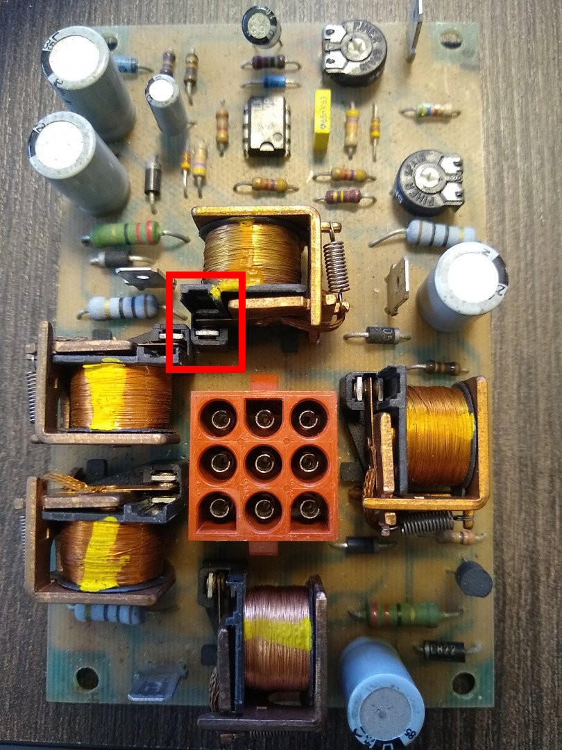 Toi kosketin on palanut, punainen kehys. Näetkö jossain tyristoreja, ruuvattu johonkin metalliin kiinni? Tämä on toi relepoksi.