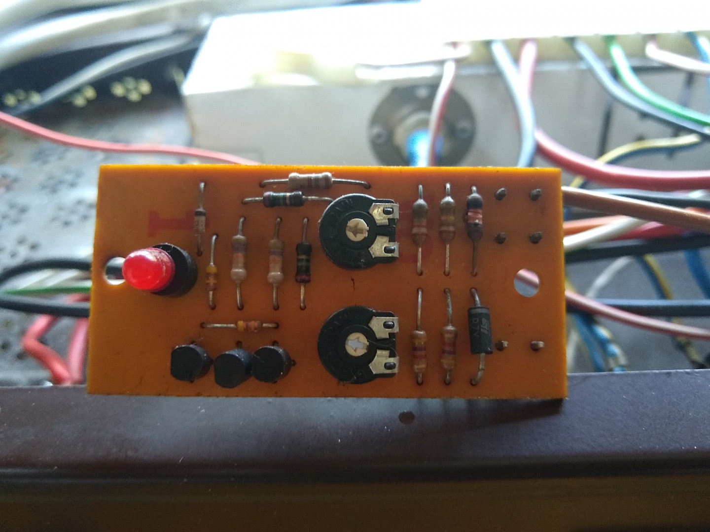 Katso sen releen kosketinta on ihan palanut ja onko peräti kiinni toimintatilassa toiseen koskettimeen. Se kolmijalkainen on transistori. Tyyppi saattaa olla BC548, tyyppi löytyy suoralta sivulta. Juota ne kaksi sinistä diodia kärjen puolelta ylös niin näet sen tyypin, kerro mitä lukee. Potikoita ei tarvitse mitata, niissä tuskin on vikaa tuossa kytkennässä.