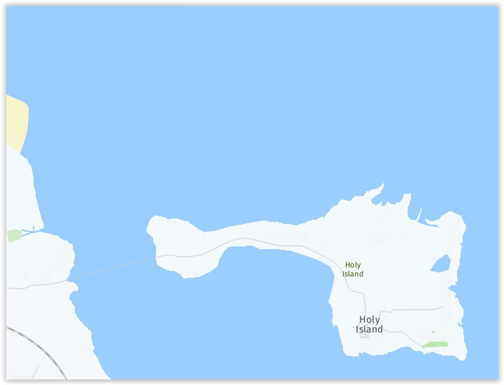 Holy Islandille (Lindisfarne) kun ajaa tiellä merkitty kellonajat milloin pääsee ja milloin pois.