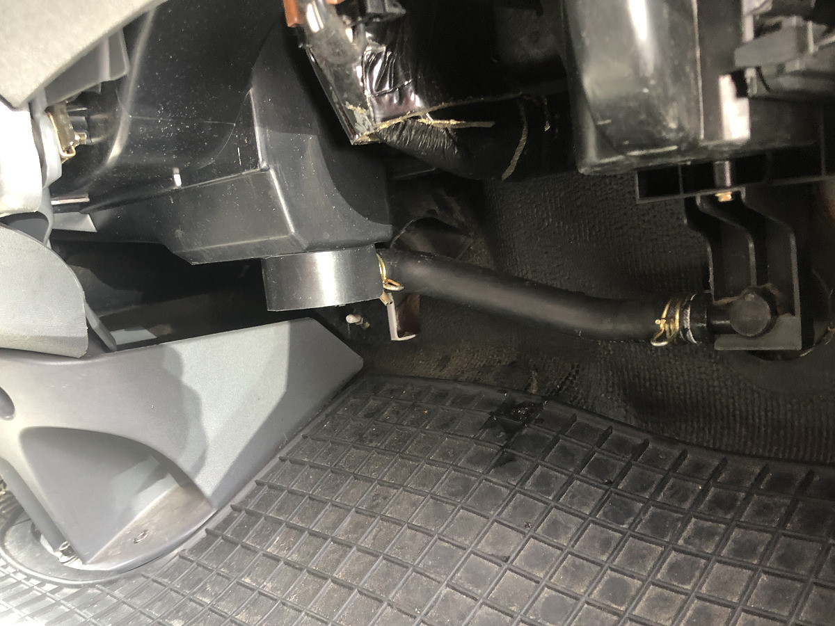 Kun tuolla Facessa oli juttua Ducato 2002 – 2006 kondenssiveden valumisesta lattialle, kävin tarkistamassa oman auton tilanteen ja otin kuvan putkesta, joka saattaa mennä roskista tukkoon