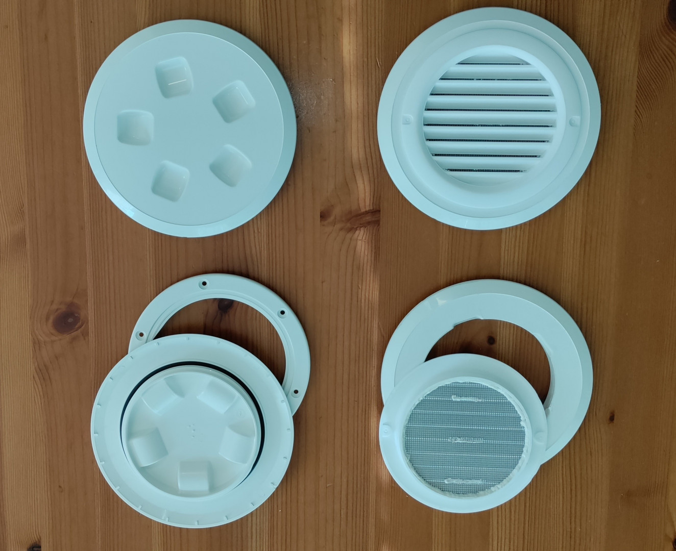 Kesä kansiin tein reiät ja liimasin ritilät. Talveksi on toiset umpikannet, joihin tulee routamatto eristeeksi.