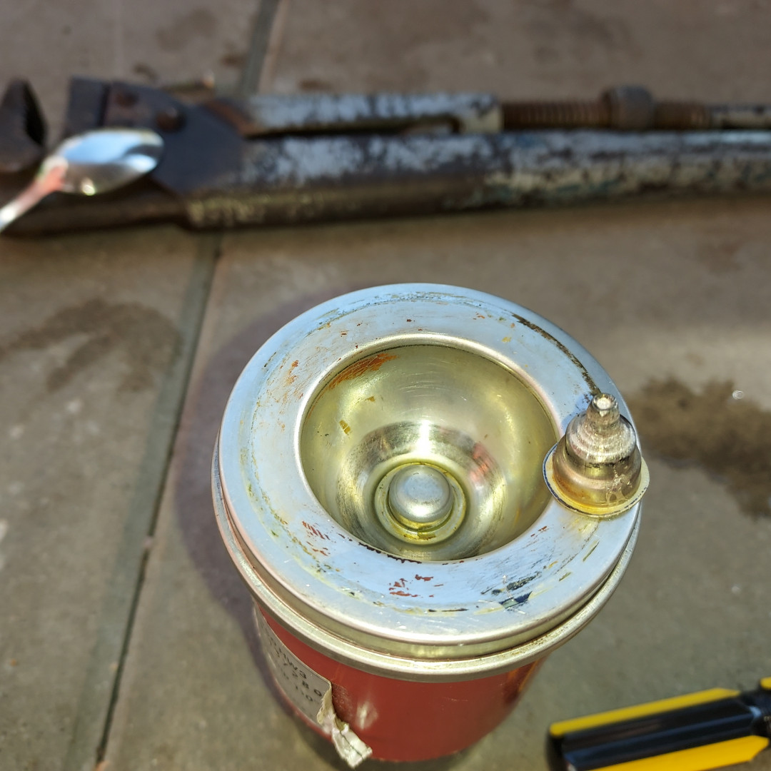 Ensimmäinen tinausyritys ja ei menny aivan nappiin, tarpeeks lämpöä ja tuo koko akseli lähti pohjasta melkosen pamauksen kera irti,(luultavasti oli tippa vettä sielä jonka höyrystyi ja nosti irti) samassa taisi käsi hiukan heilahtaa ja sulaa hiukan valahti akseliinki