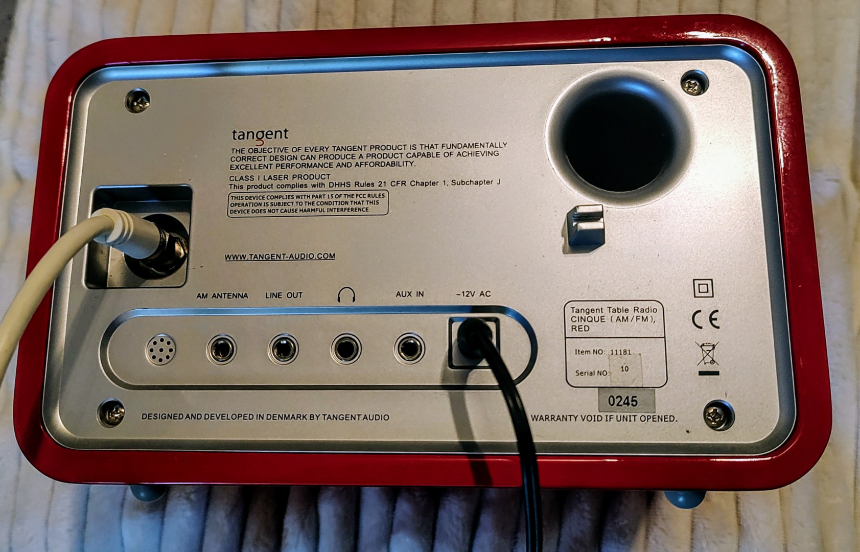 Löytyy tollanen Tangent. Virtalähteen jännite 12V. Joskus mietin vaunuun. Tämä pitänee laittaa myyntiin, kun ei tarvetta. RDS, CD.
