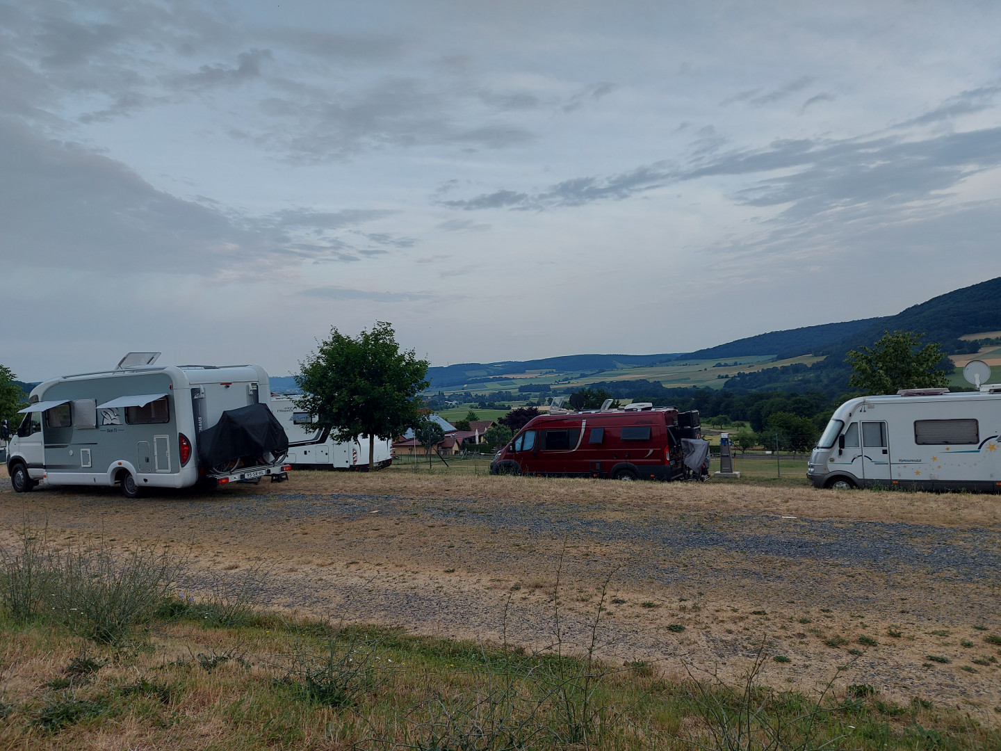 Saksan Hammelburg, Am Forenhoff tai sinne päin oli stelplatsin nimi. Hinta 13 euroa ellei saksalainen karavaanari huijannut, kun ihmettelin, että mihin pitää maksaa paikka, kun missään ei näy henkilökuntaa. Maksu huomenna aamulla. Huomenna saksan legolandiin.