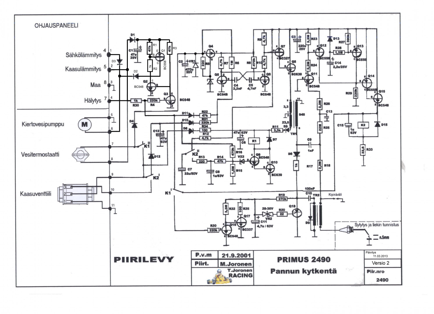 Lisäksi pannussa joku virtajohdin kiertovesipumpulle poikki koska kerroit että pumppu lähtee käyntiin jos sähköpatruunan nappi on päällä mutta ei pyöri pelkän pannun päälläolossa.
