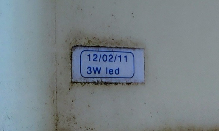 Eihän karavaanari kykene enää tikkaalle nousemaan ja säästääkin pitää. Laitoin tarran siksi, kun tuo on meillä eka ledi ulkokäytössä numerovalaisimessa. Tarrasta voi sitten katsoa kauanko kestää.