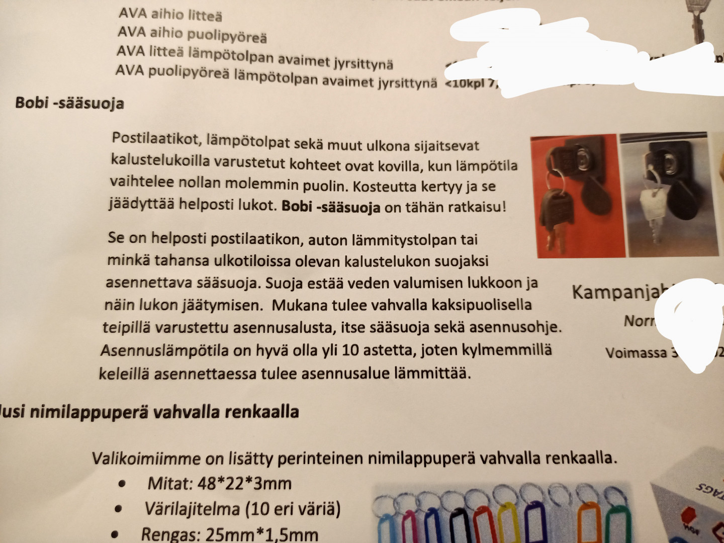 Onpa taas hyödyllinen aihe, hain tänään tuota Abloyn lukkoöljyä ja ruiskuttelessani sitä Adrian lukkoihin ihmettelin suojaläpäreiden puuttumista kaikista lukoista.