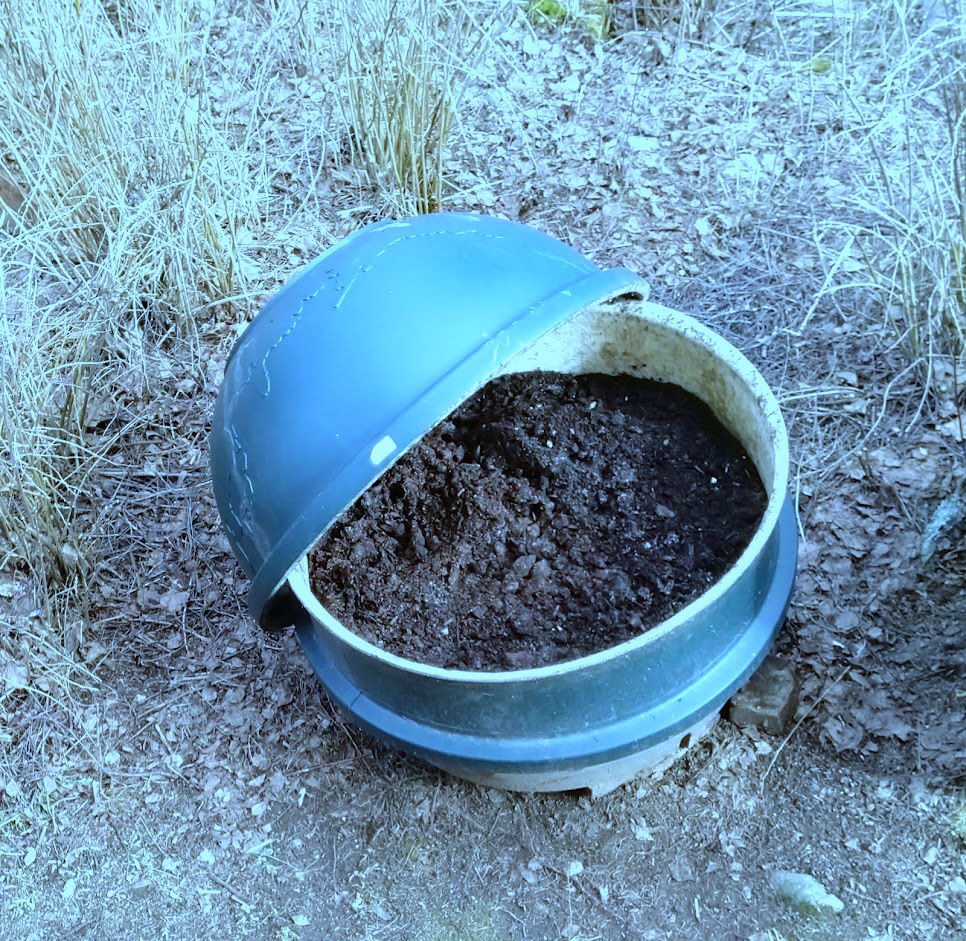 la alueella, on kompostointi-ilmoitus tehty vuosikymmeniä sitten. Siellä on käytössä kompostikäymälä ja kaksi kompostoria. Toinen jälkikompostointiin