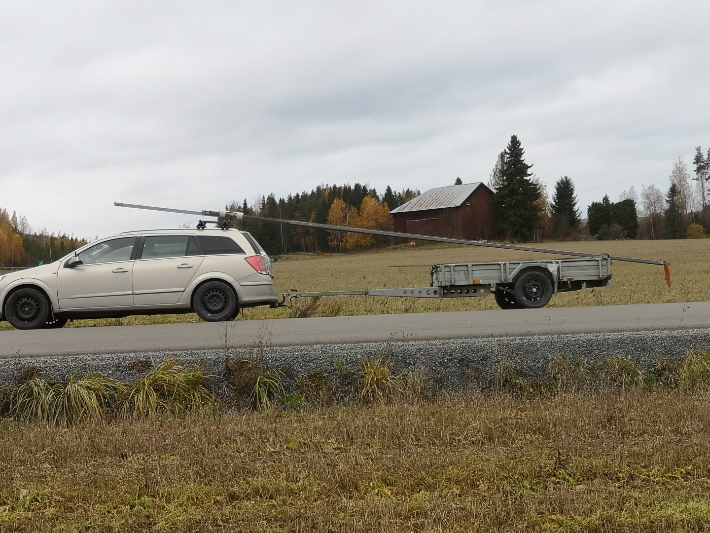 Joskus poliisin jutussa oli tälläinen kuljetus topattuna "malliesimerkkinä", ilman liuku-kääntöpöytää. Tuo kääntöpöytä kun sallii ihan linkkuun menon  mäkisessäkin maastossa. Varmuuden välttämiseksi kuljin kuitenkin pääasiassa kyläteillä.